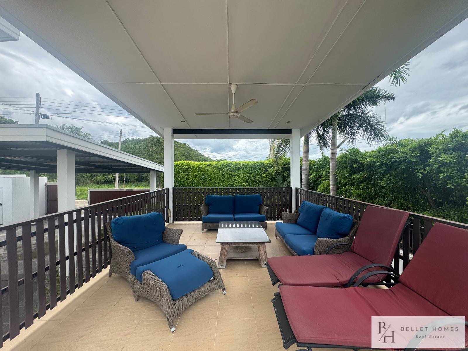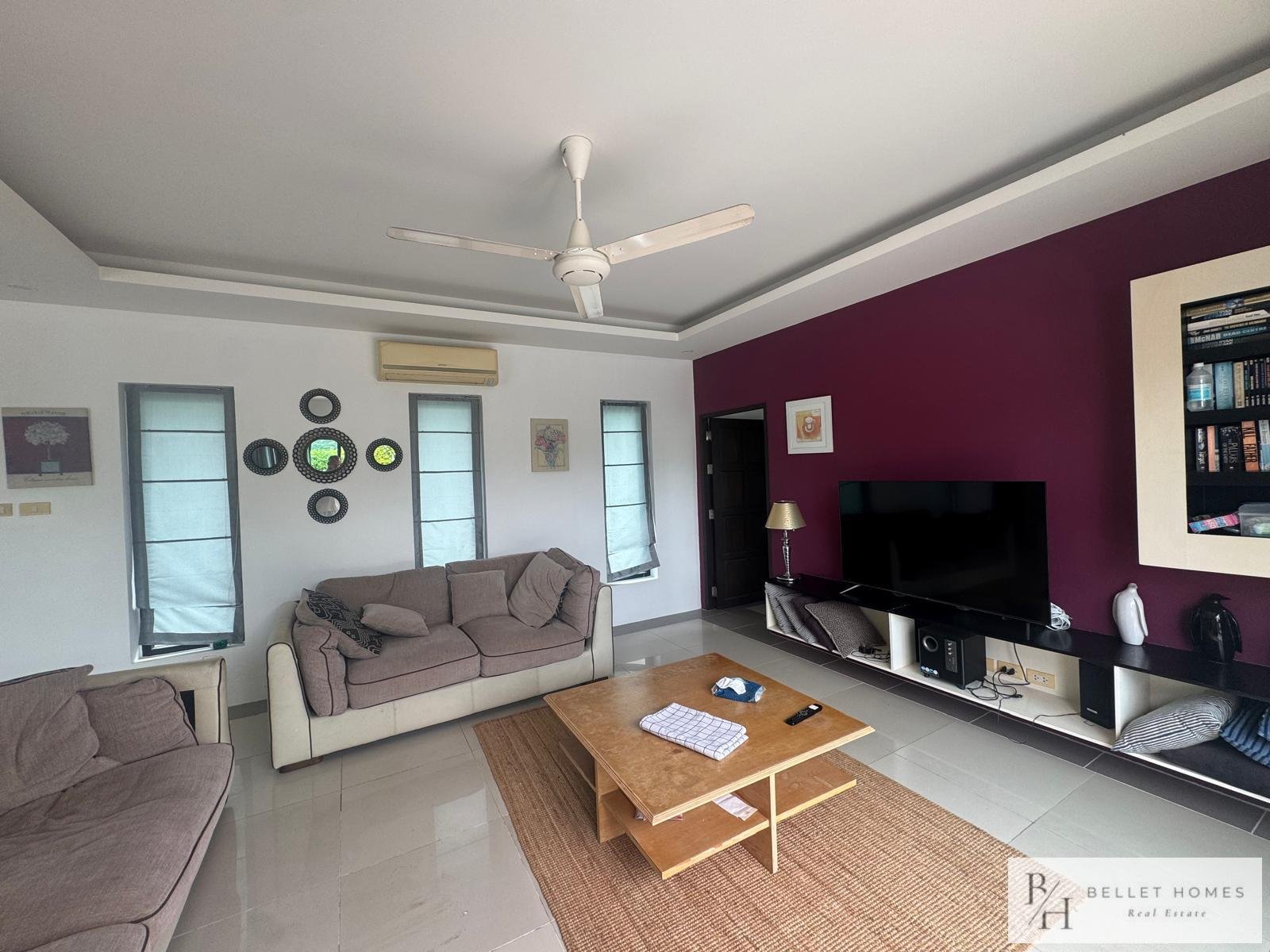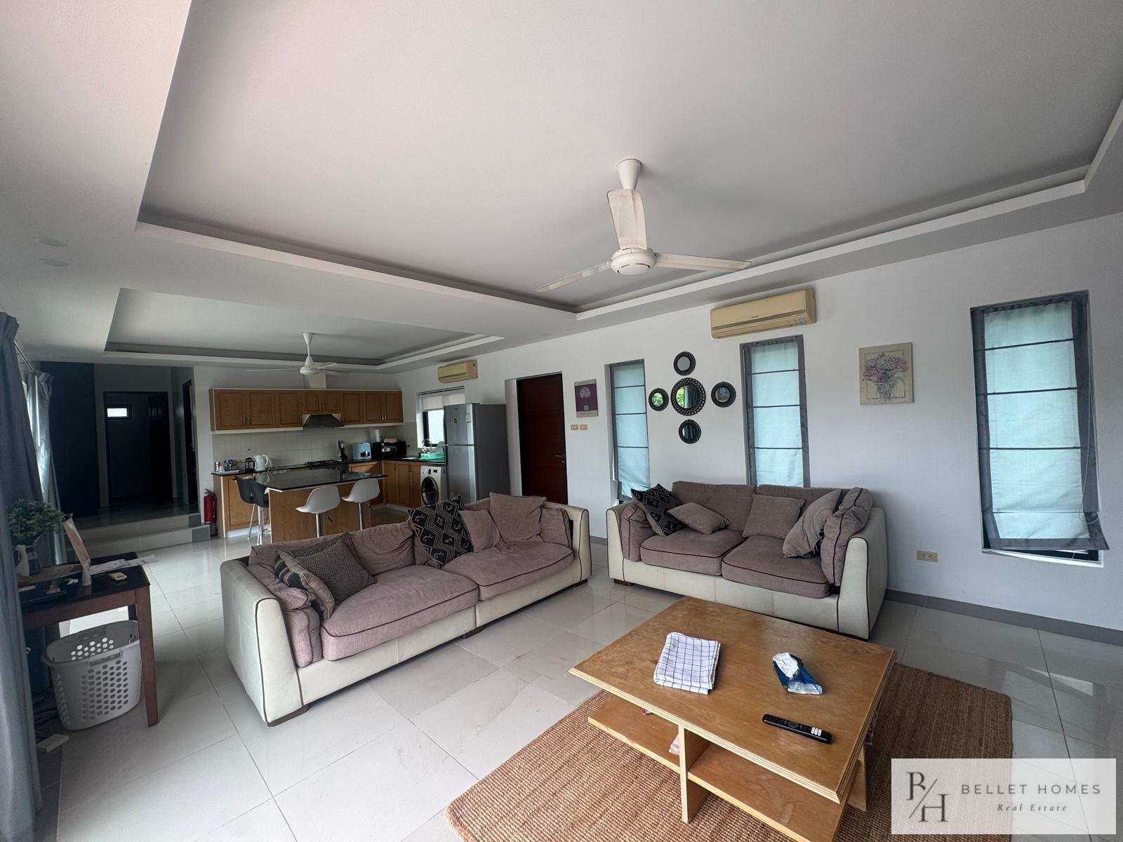 This fully furnished villa offers 130 sqm of comfortable living space with 3 bedrooms and 3 bathrooms, designed for privacy and relaxation. Located in a quiet neighborhood with beautiful mountain views, ideal for long-term living in Hua Hin.