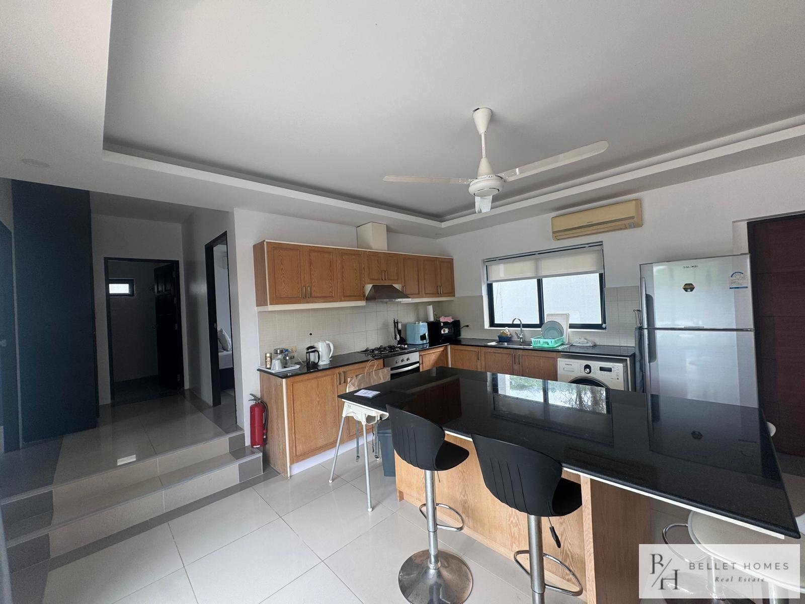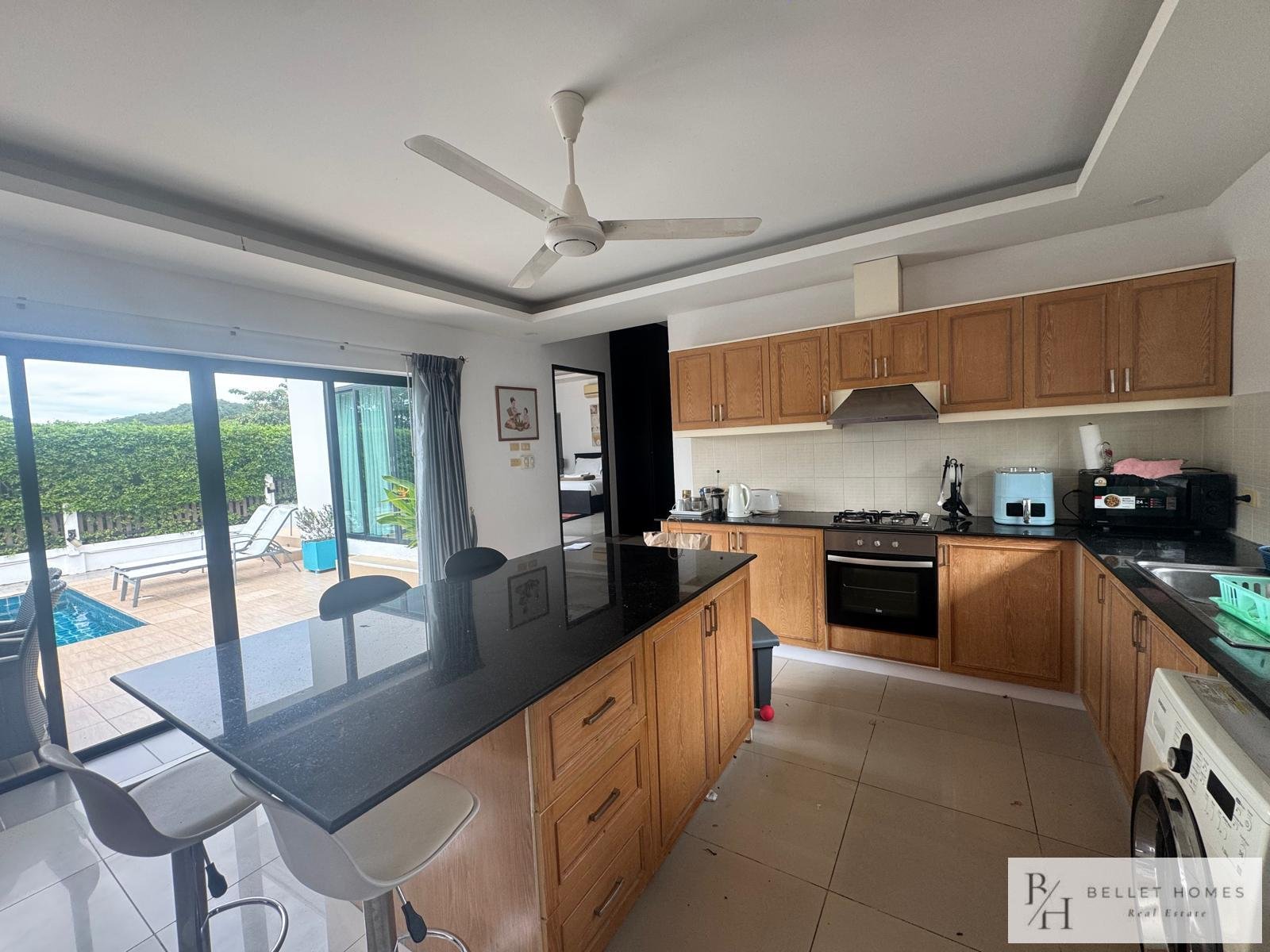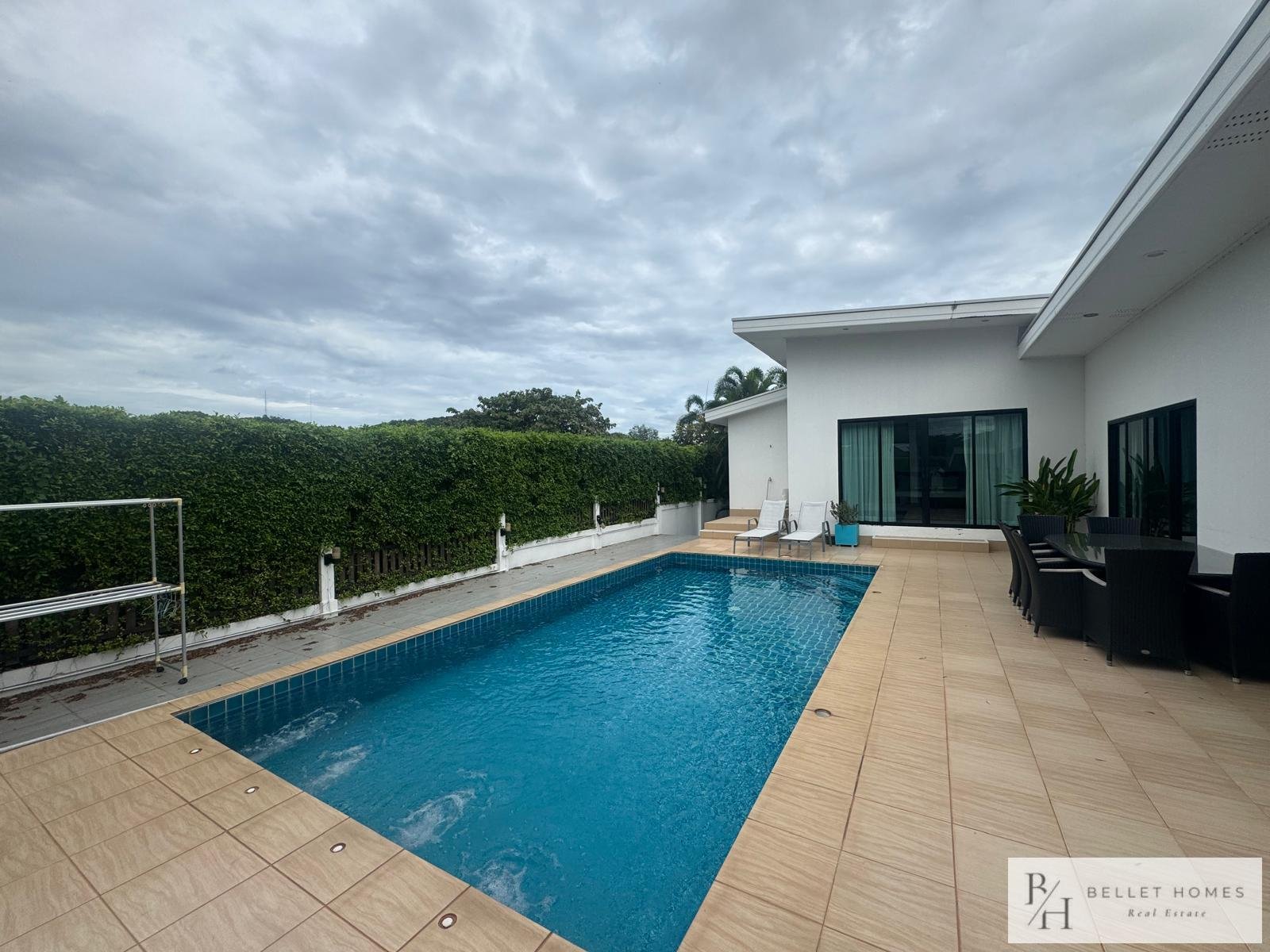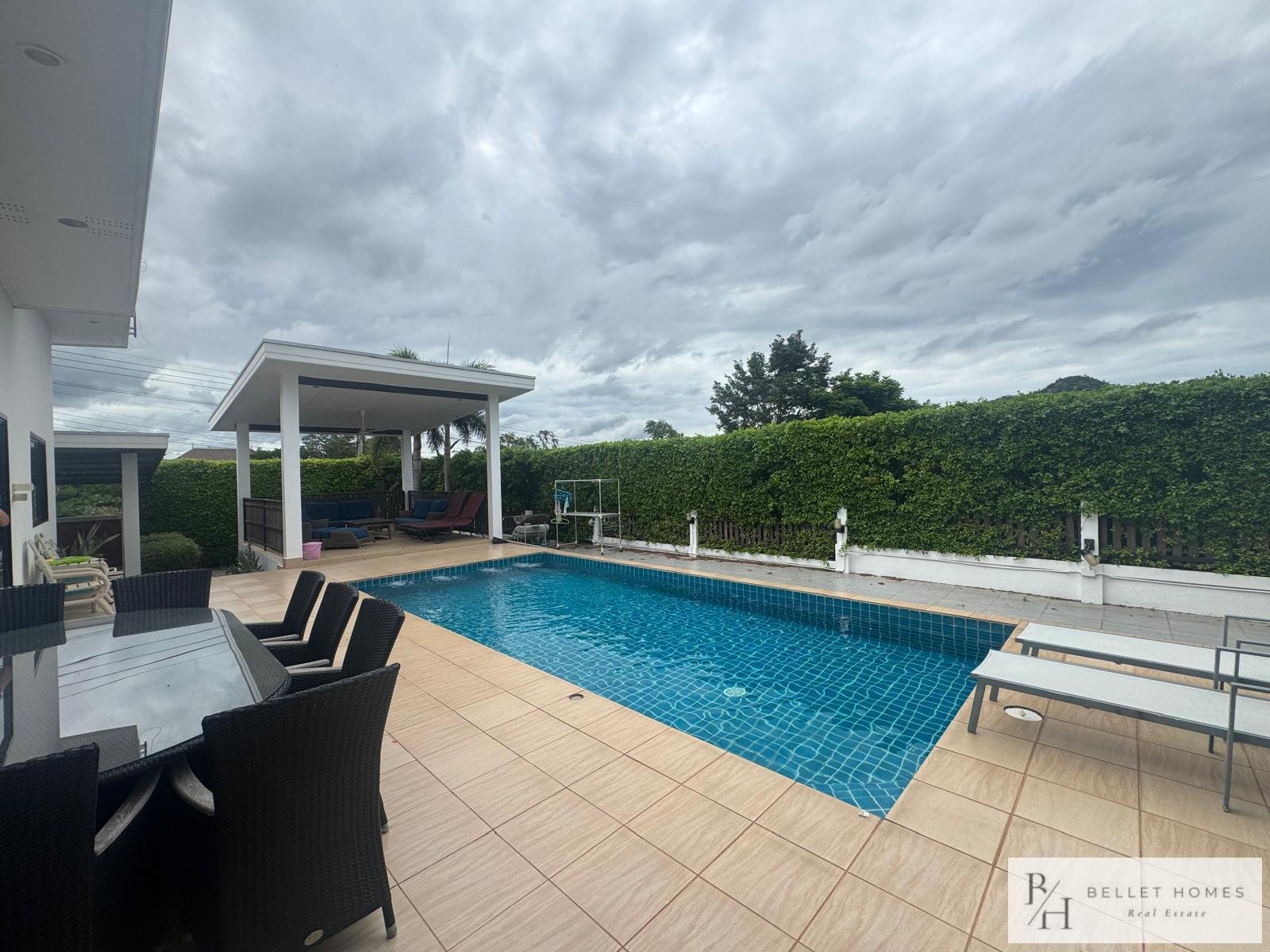 This fully furnished villa offers 130 sqm of comfortable living space with 3 bedrooms and 3 bathrooms, designed for privacy and relaxation. Located in a quiet neighborhood with beautiful mountain views, ideal for long-term living in Hua Hin.