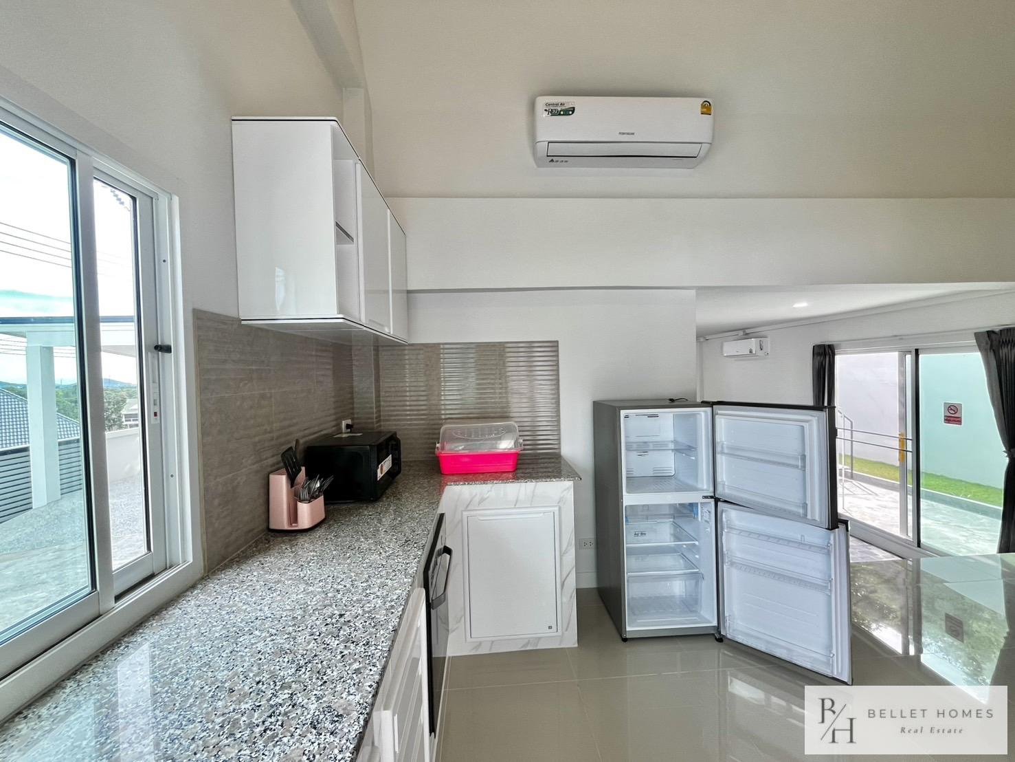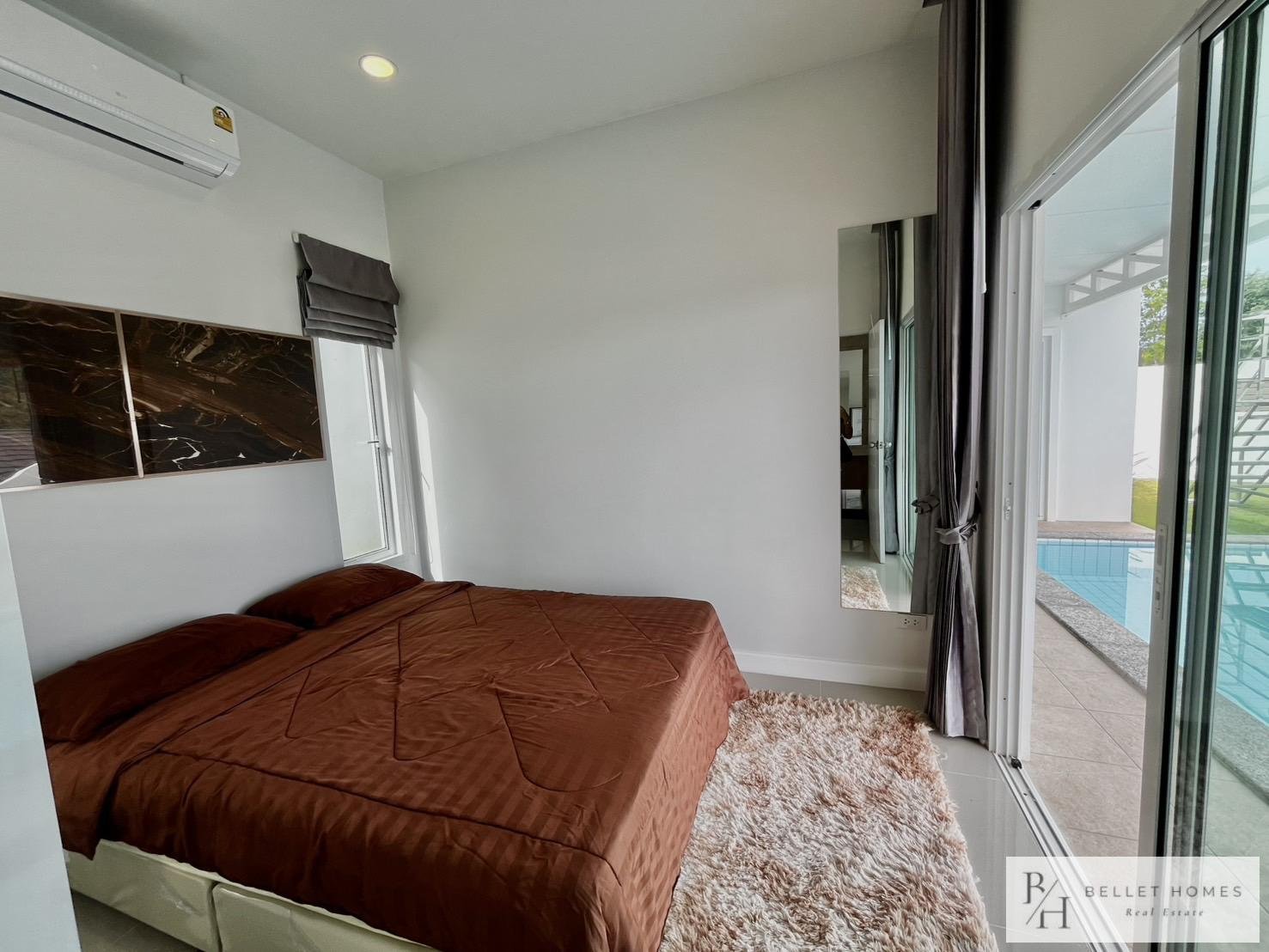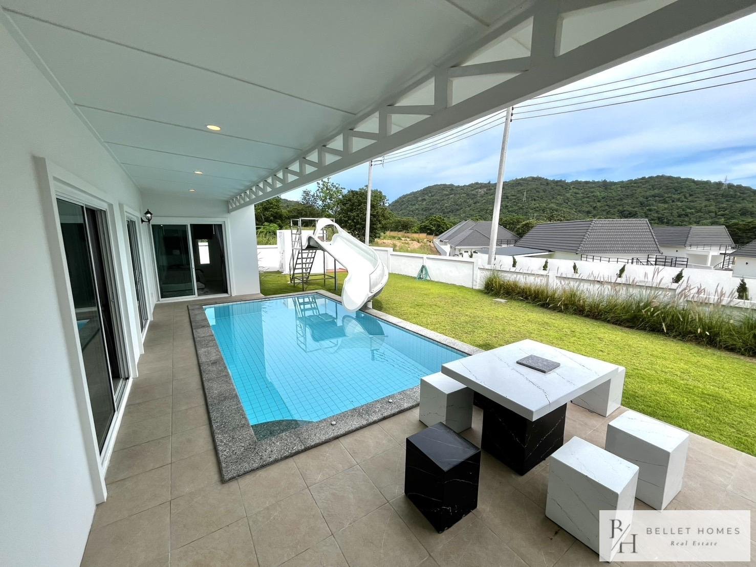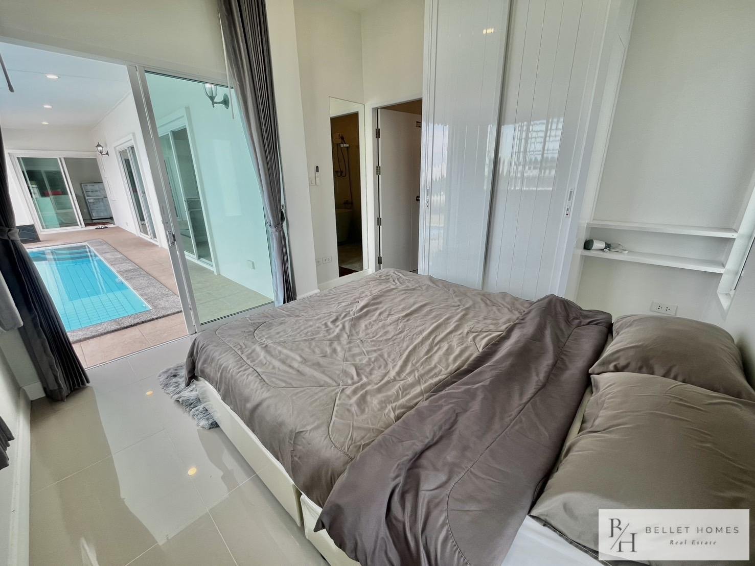 This modern private pool villa offers generous living space and a comfortable layout, ideal for families or long-term residents. Designed with bright interiors, a rooftop terrace, and a private swimming pool for relaxed living. Located in a convenient area with easy access to schools, golf courses, and shopping. Move-in ready with maintenance services included.