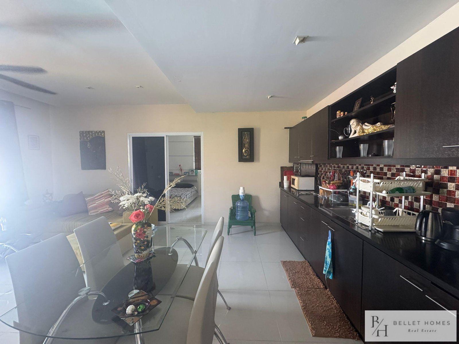 • Contemporary layout with living area, kitchen, and dining space