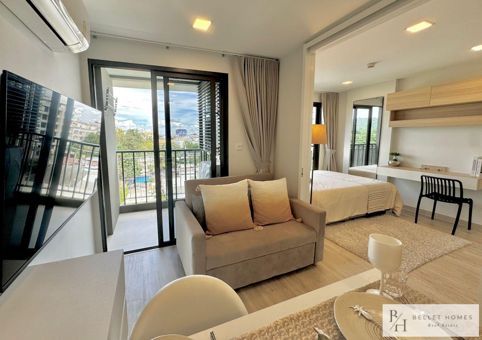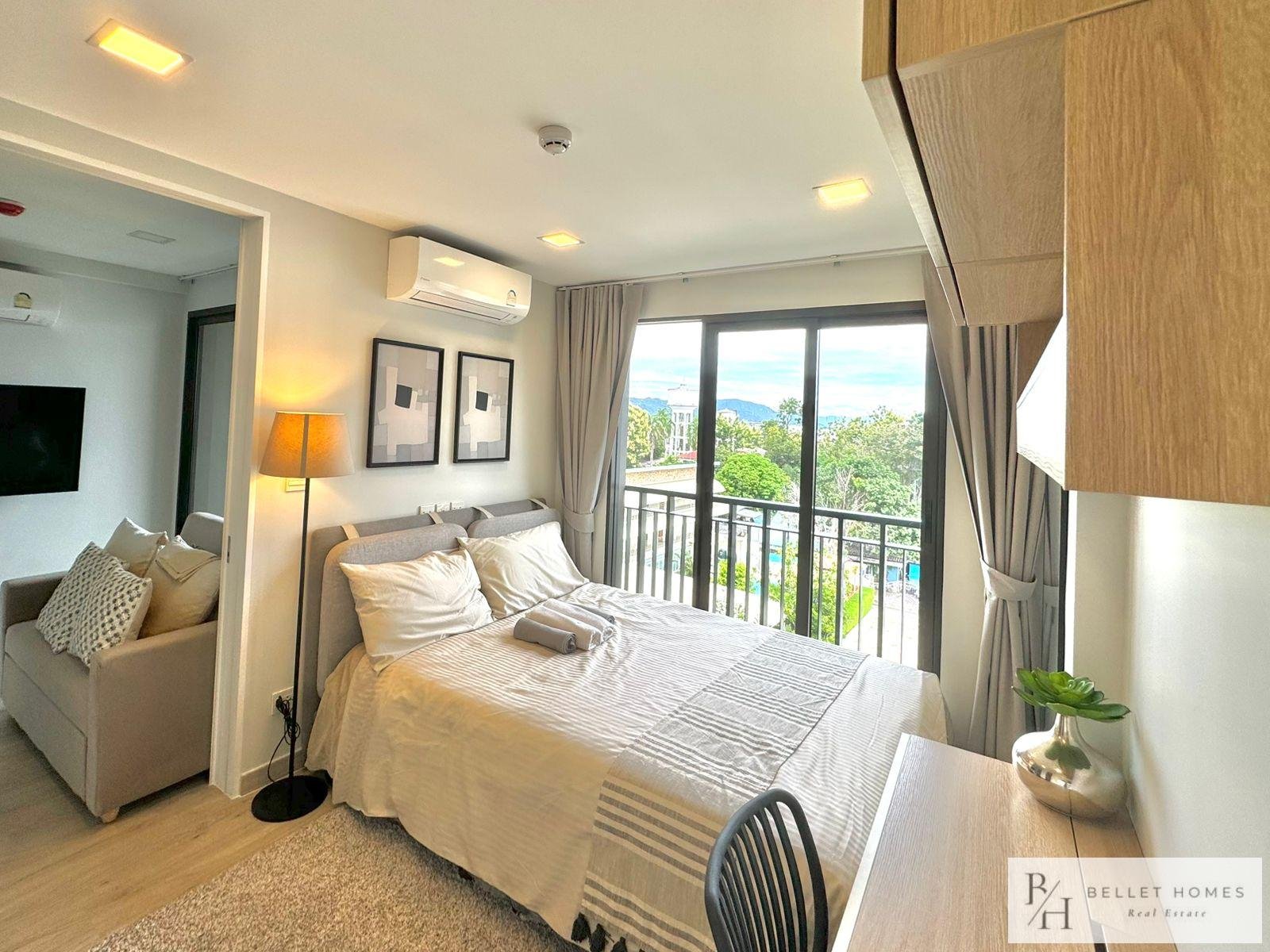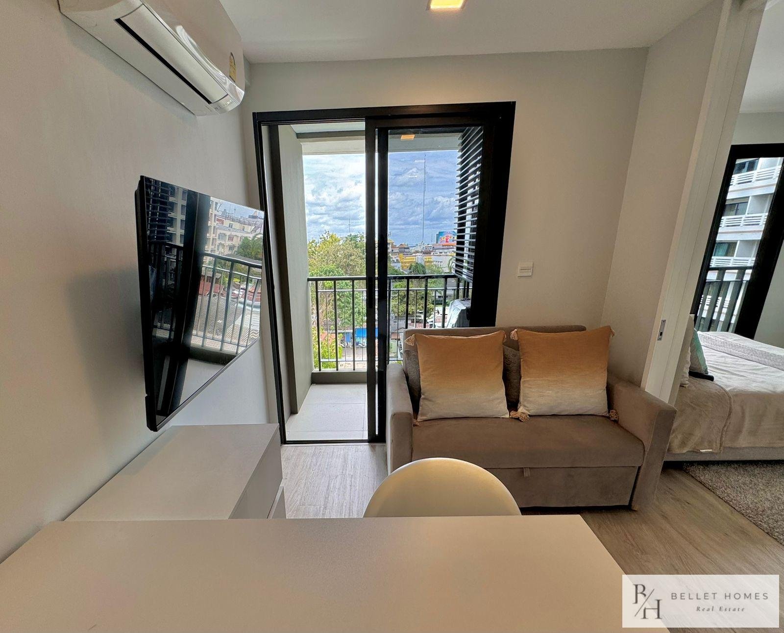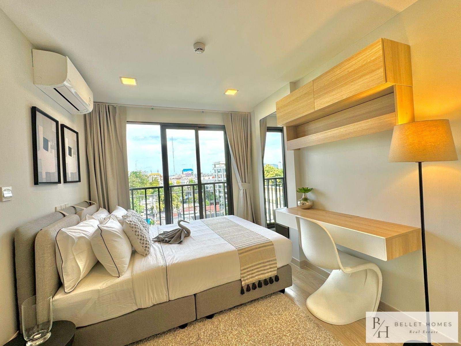 This modern city-center condo offers ultimate convenience in the heart of Hua Hin, located right at the Red Cross Roundabout. With everything just minutes away, the unit is perfect for those seeking a vibrant lifestyle with easy access to the beach, shopping, and essential amenities.