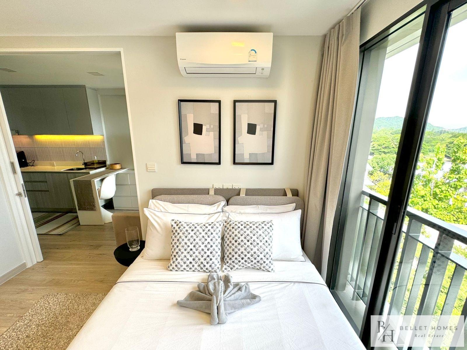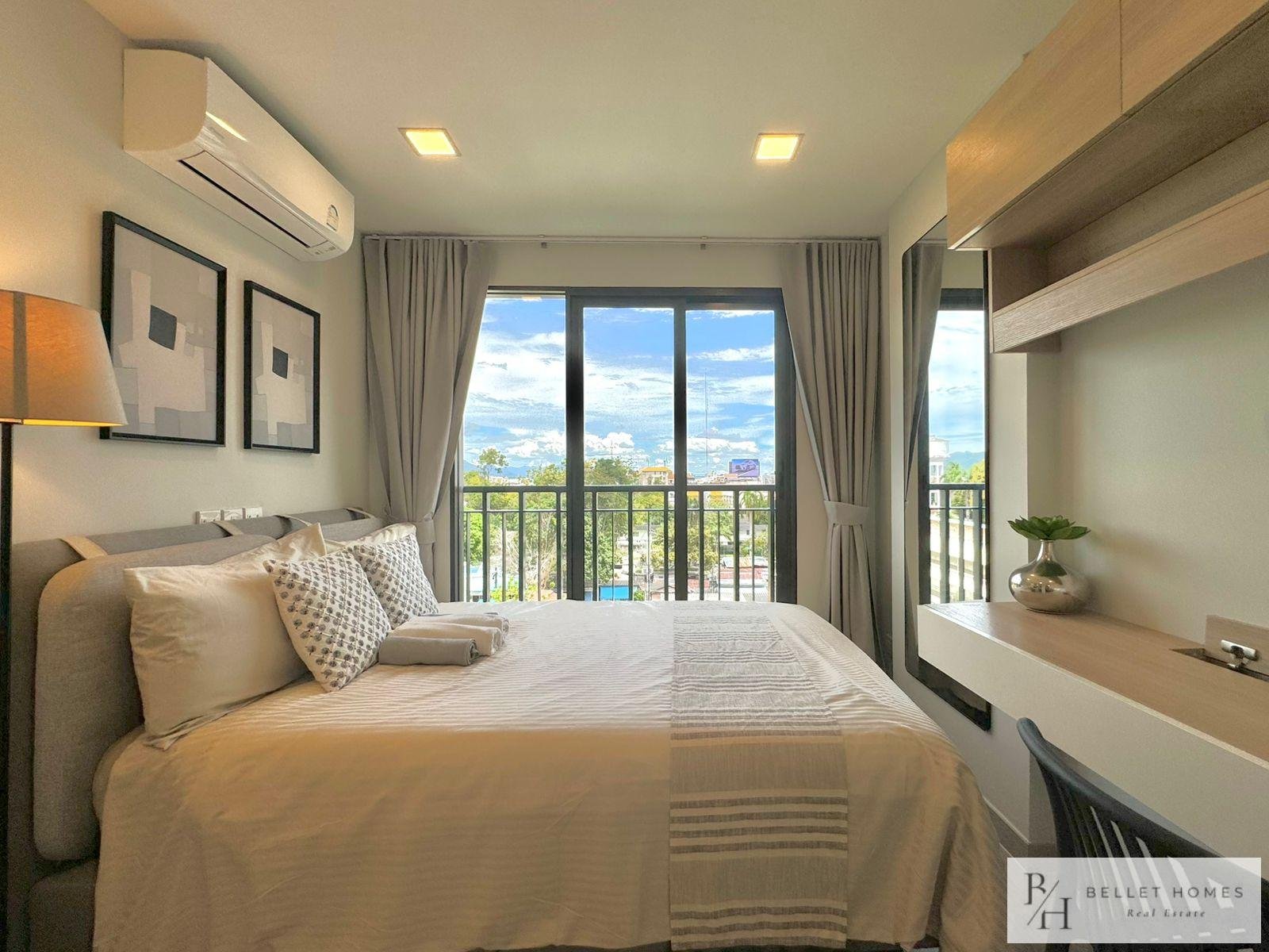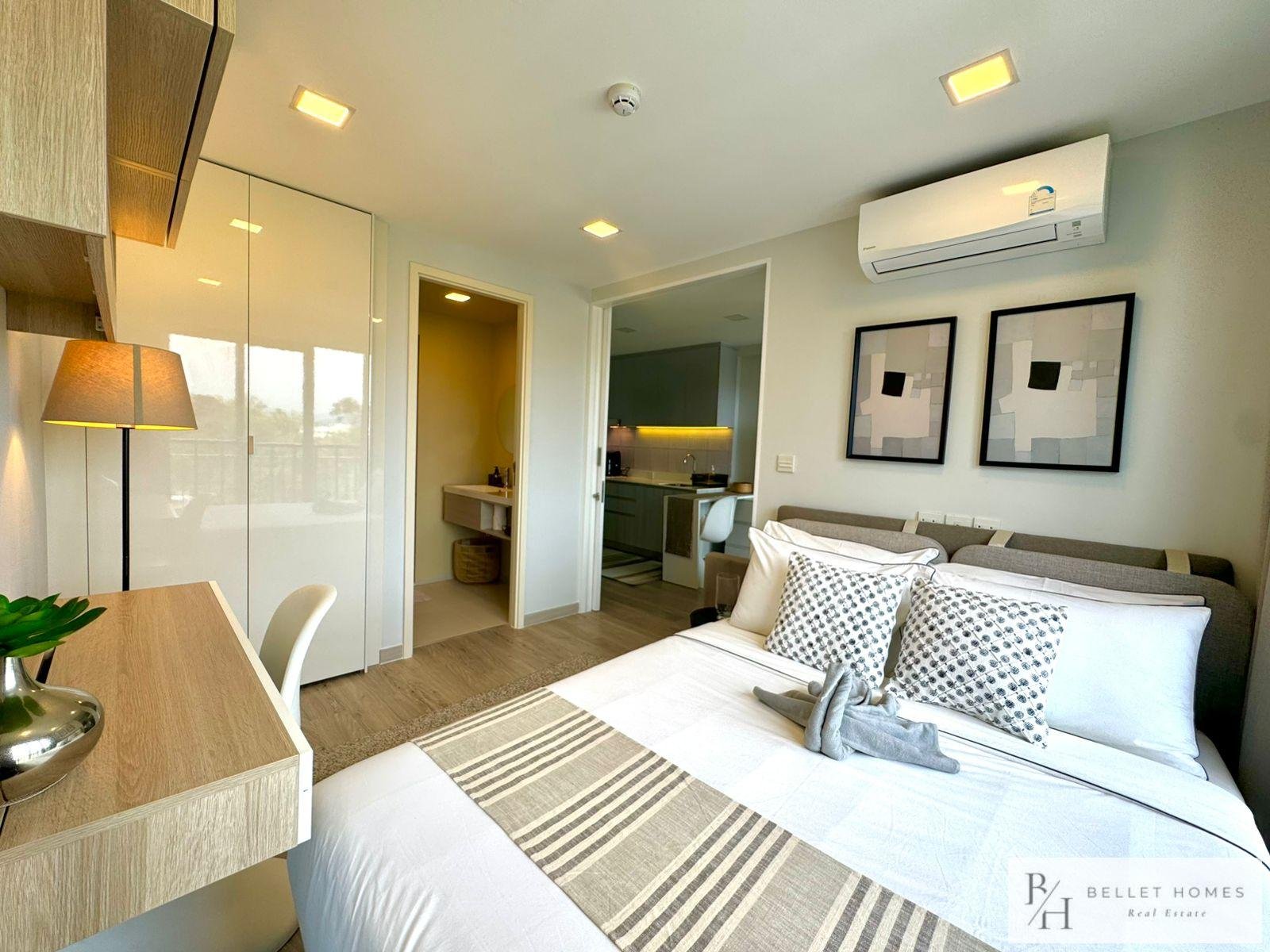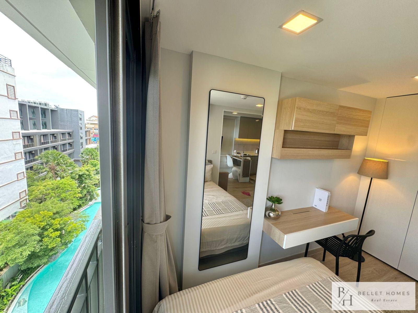 This modern city-center condo offers ultimate convenience in the heart of Hua Hin, located right at the Red Cross Roundabout. With everything just minutes away, the unit is perfect for those seeking a vibrant lifestyle with easy access to the beach, shopping, and essential amenities.