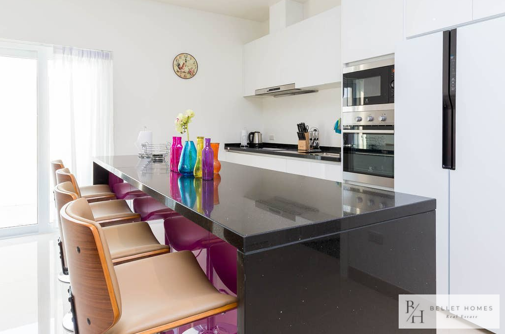 • Fully equipped European kitchen with dining table and roof fan