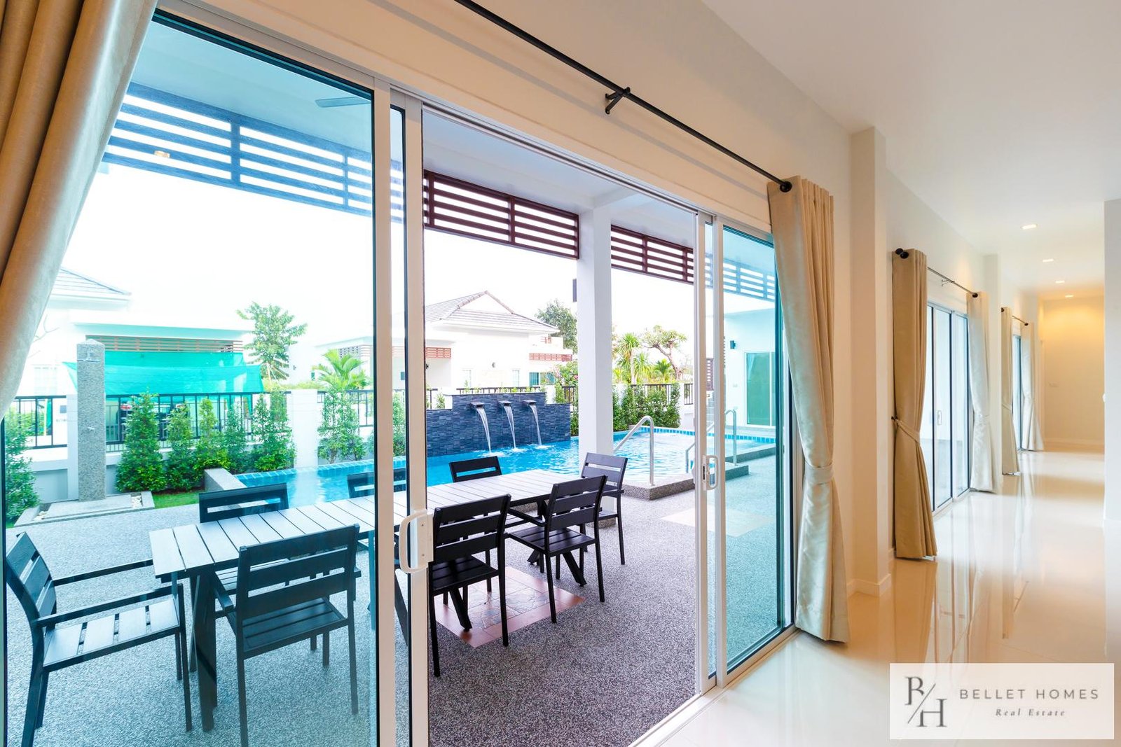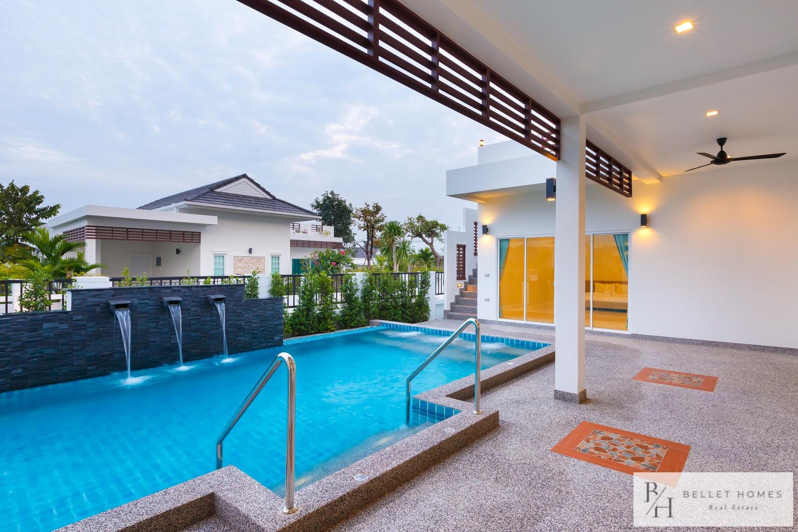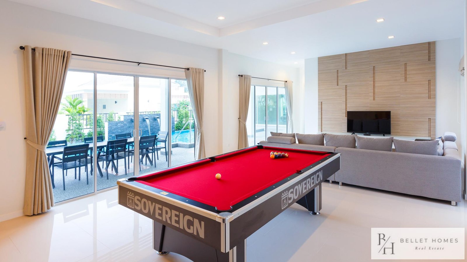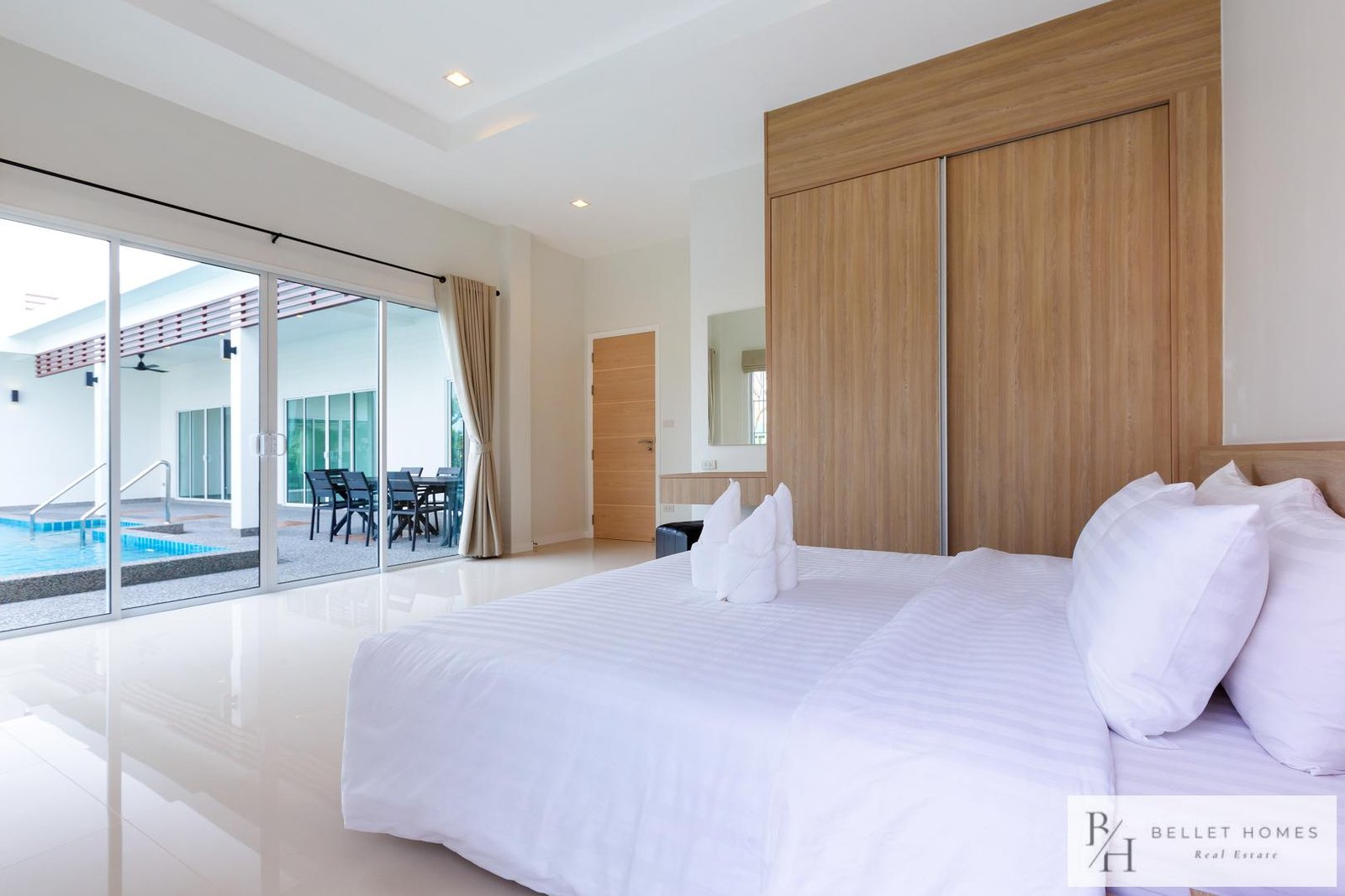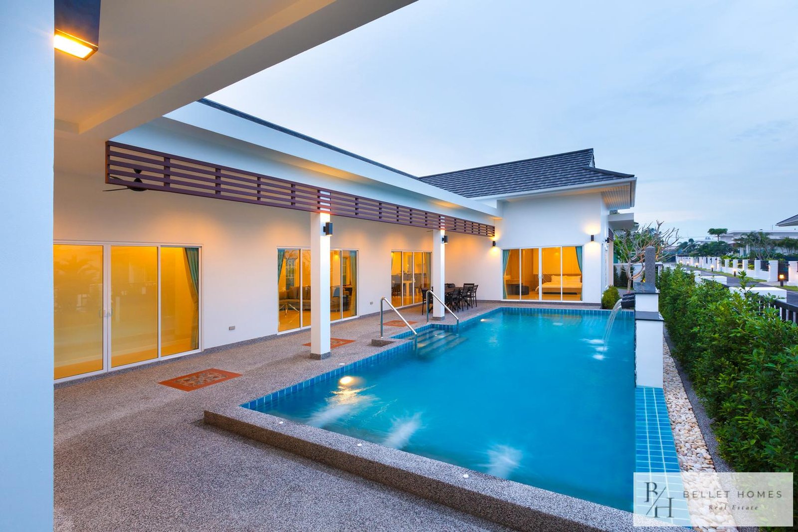 This beautiful private pool villa is surrounded by mountains, offering a peaceful and relaxing atmosphere while still providing convenient access to Hua Hin city. Located near Family Mart and 7-Eleven at the entrance of the soi, and only about 5 minutes from Sai Noi Beach, the property combines tranquility with convenience.