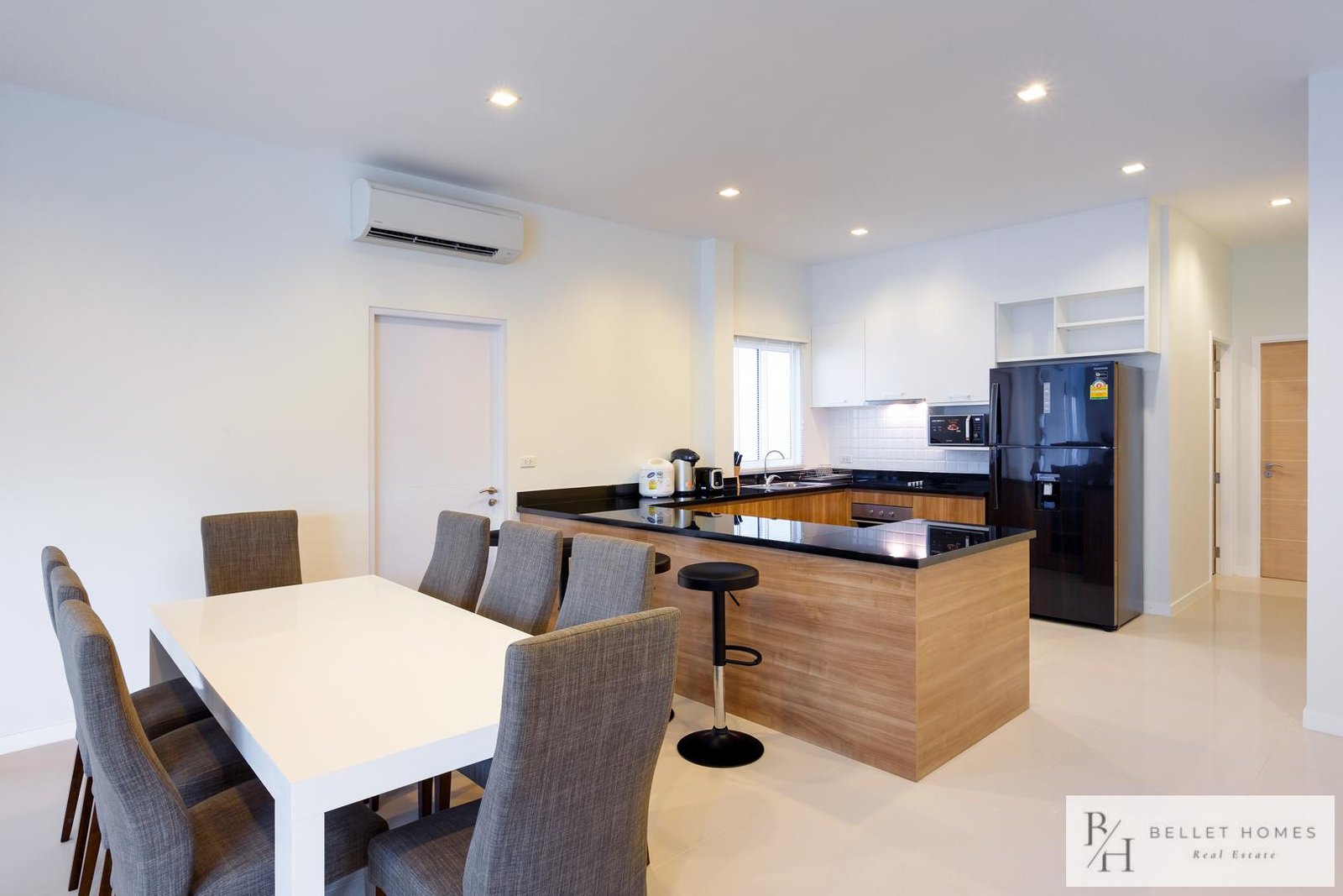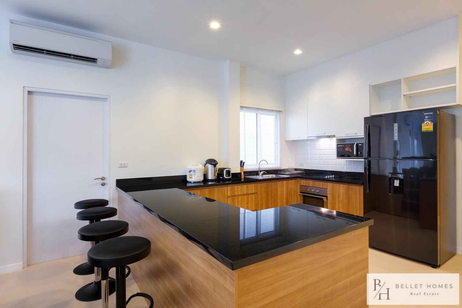 • TV • Air conditioning • Hair dryer • Wi-Fi internet • Dining table set • Refrigerator • Microwave • Electric kettle • Toaster • Electric stove • Oven • Rice cooker • Kitchenware (plates, bowls, cutlery, bottle opener) • BBQ grill • Glassware and coffee cups