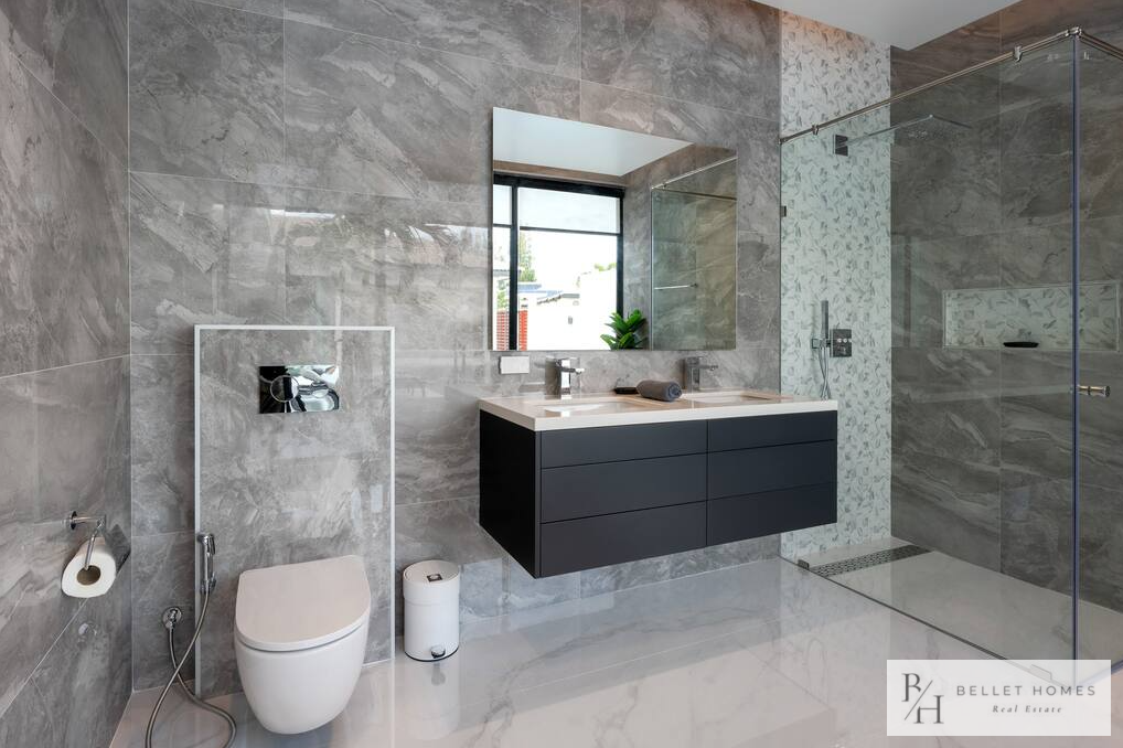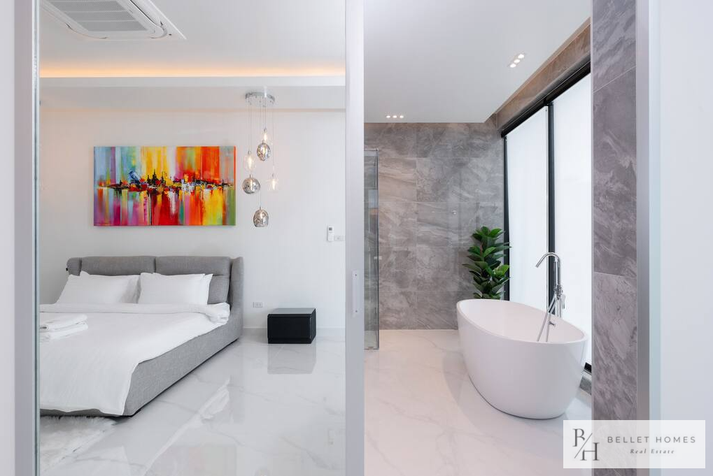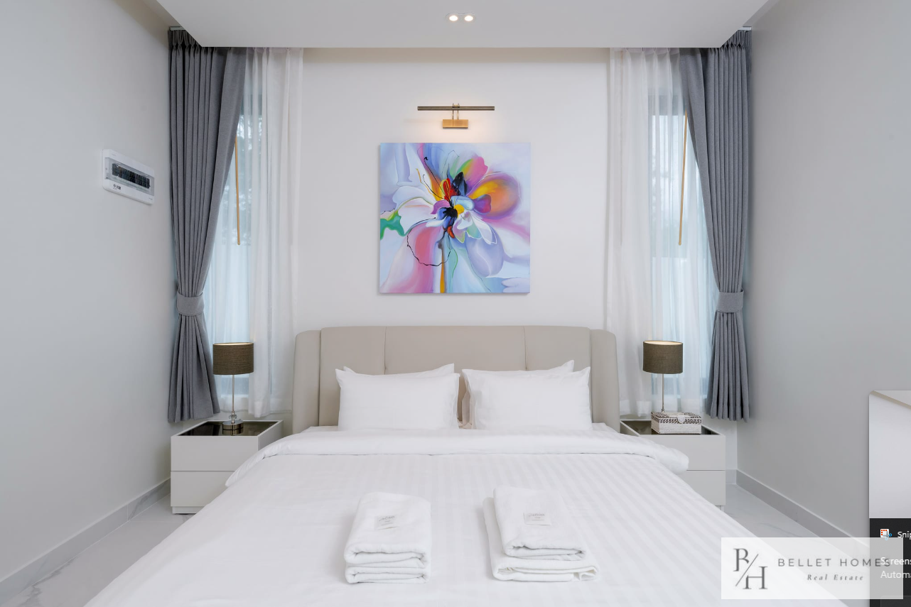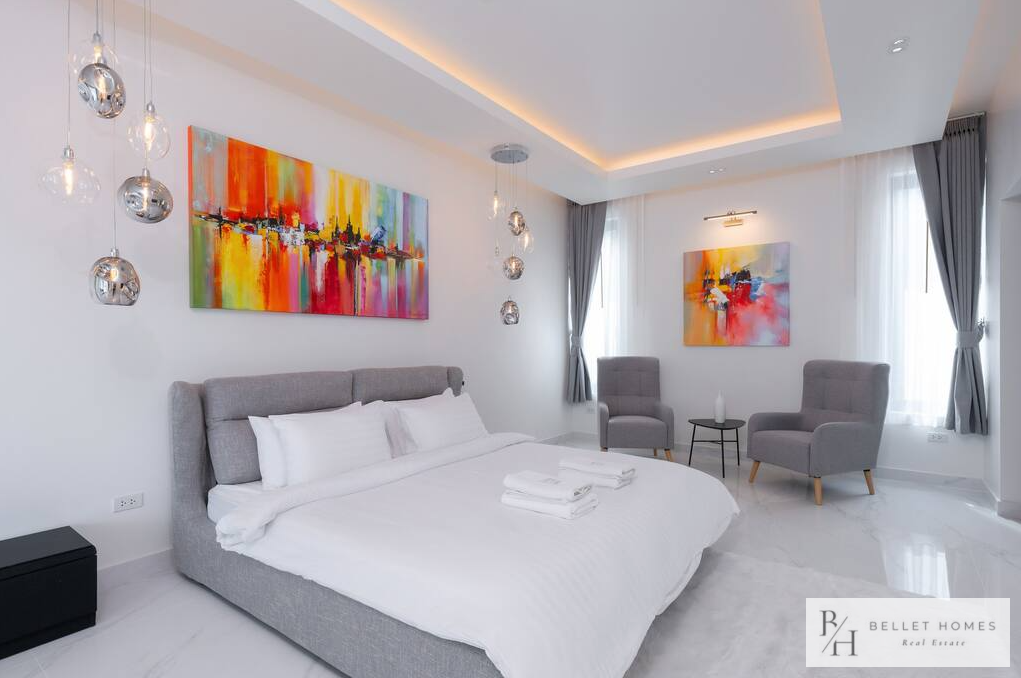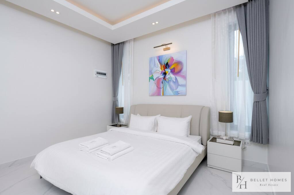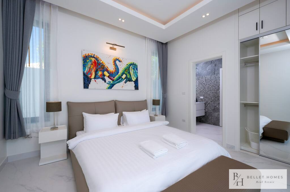 • 5 bedrooms / 3 bathrooms (1 ensuite with bathtub & walk-in wardrobe) • Spacious living & dining area • 65″ Smart TV • Fully equipped European kitchen with island & wine cooler • Free high-speed WiFi & 3BB TV box • Washing machine • Carport