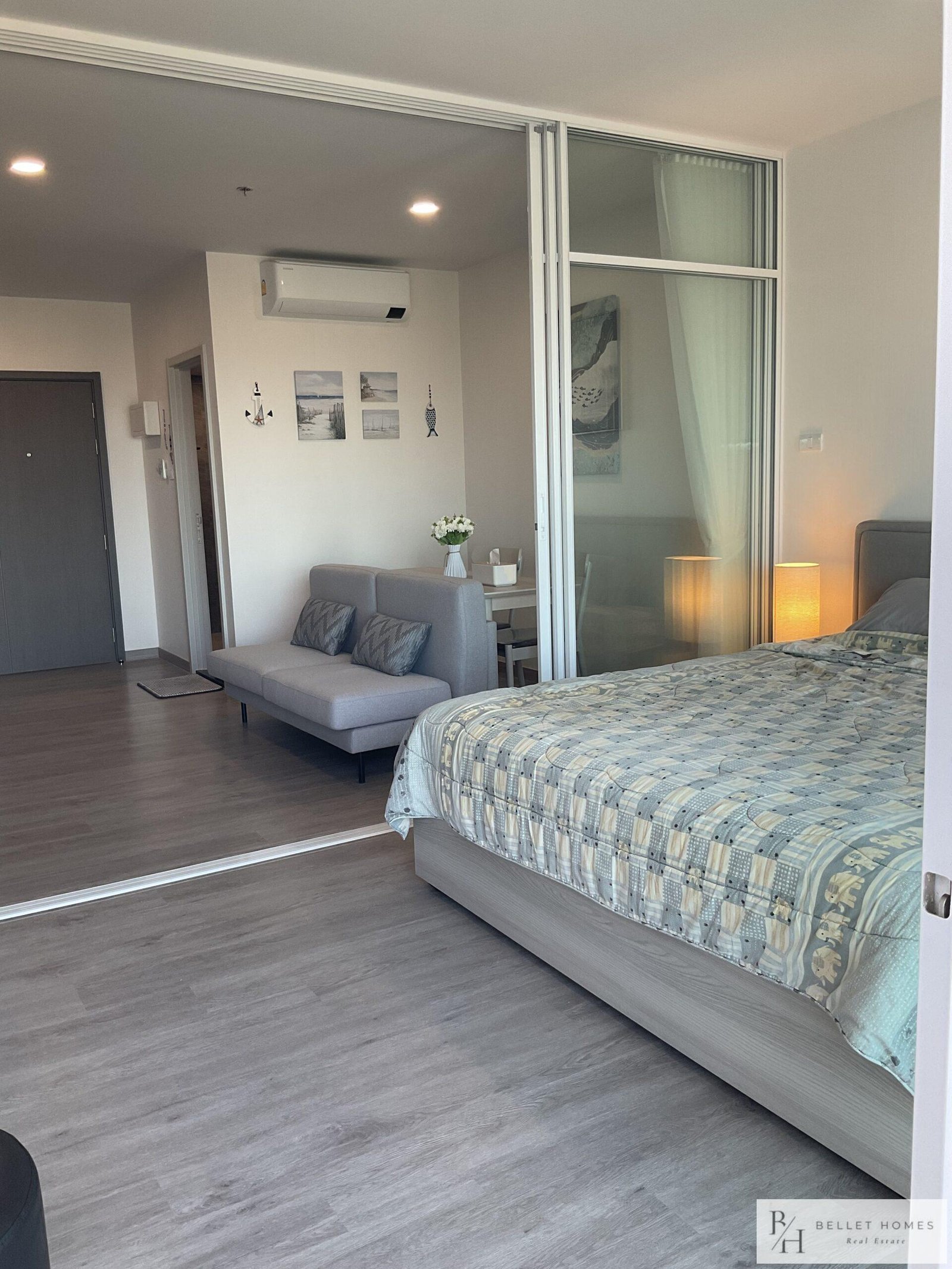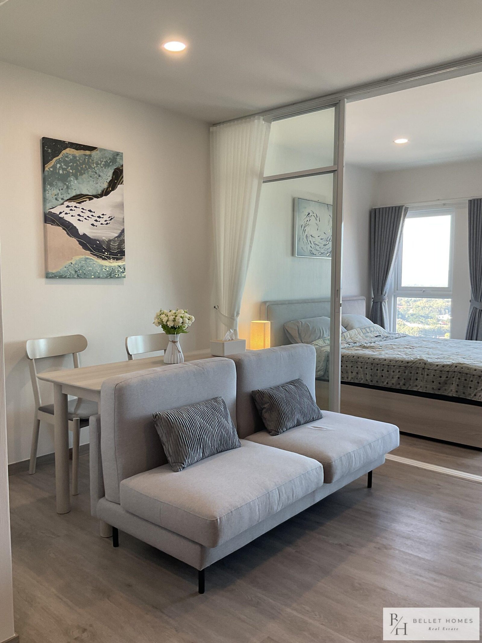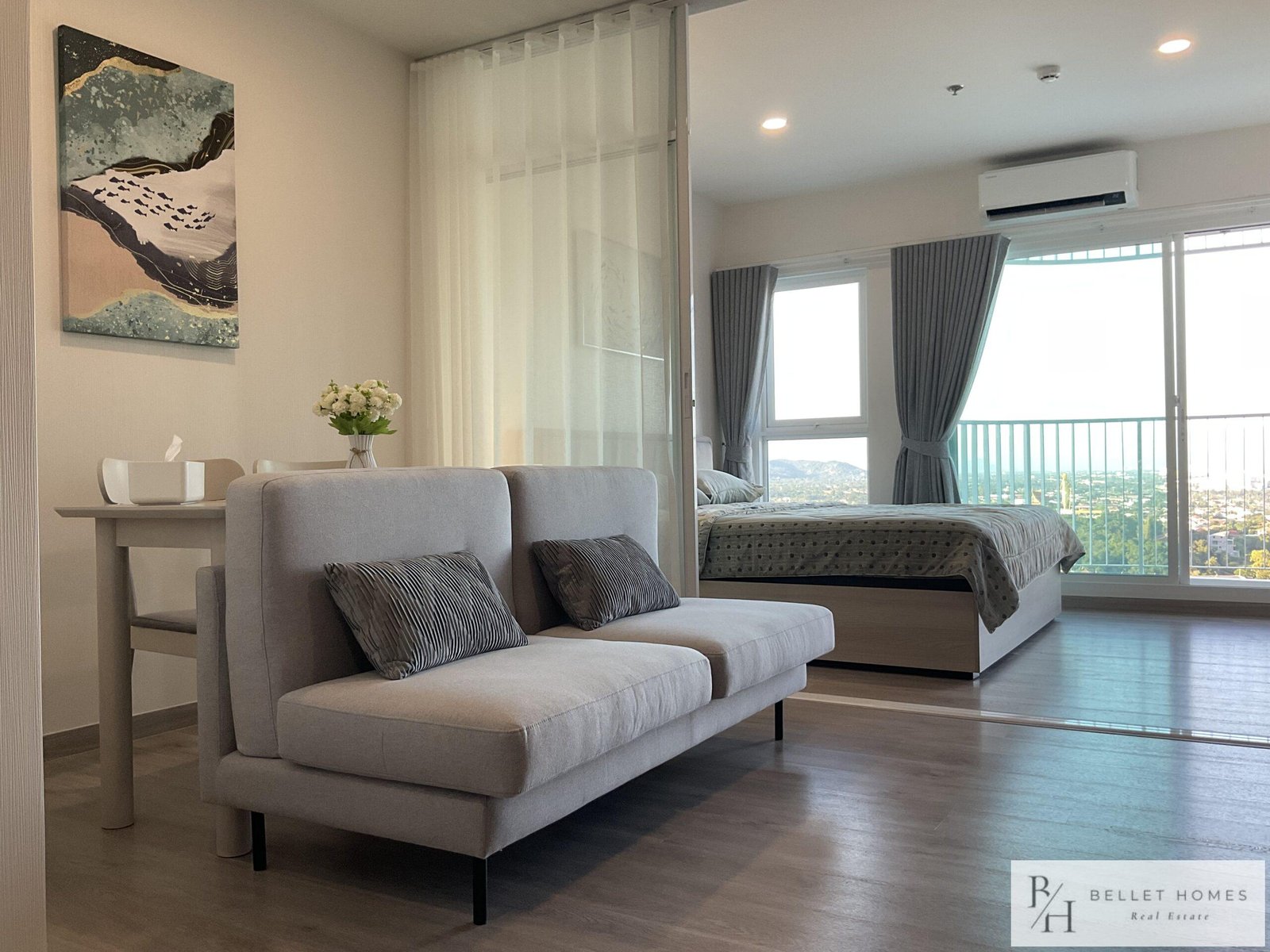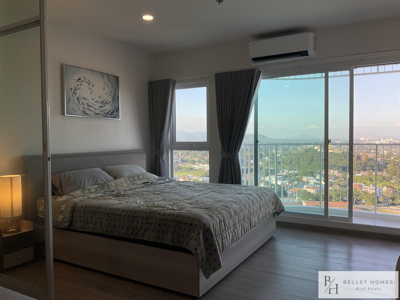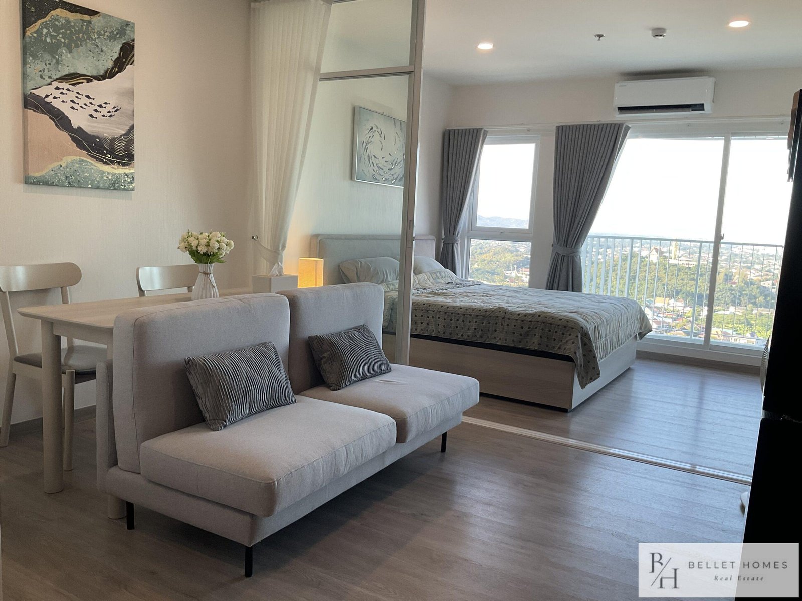 This modern high-rise condo offers a comfortable and convenient lifestyle in the heart of Hua Hin. Located just a short drive from the city center, the unit features stunning sea and mountain views from a high floor, creating a relaxing and private atmosphere.
