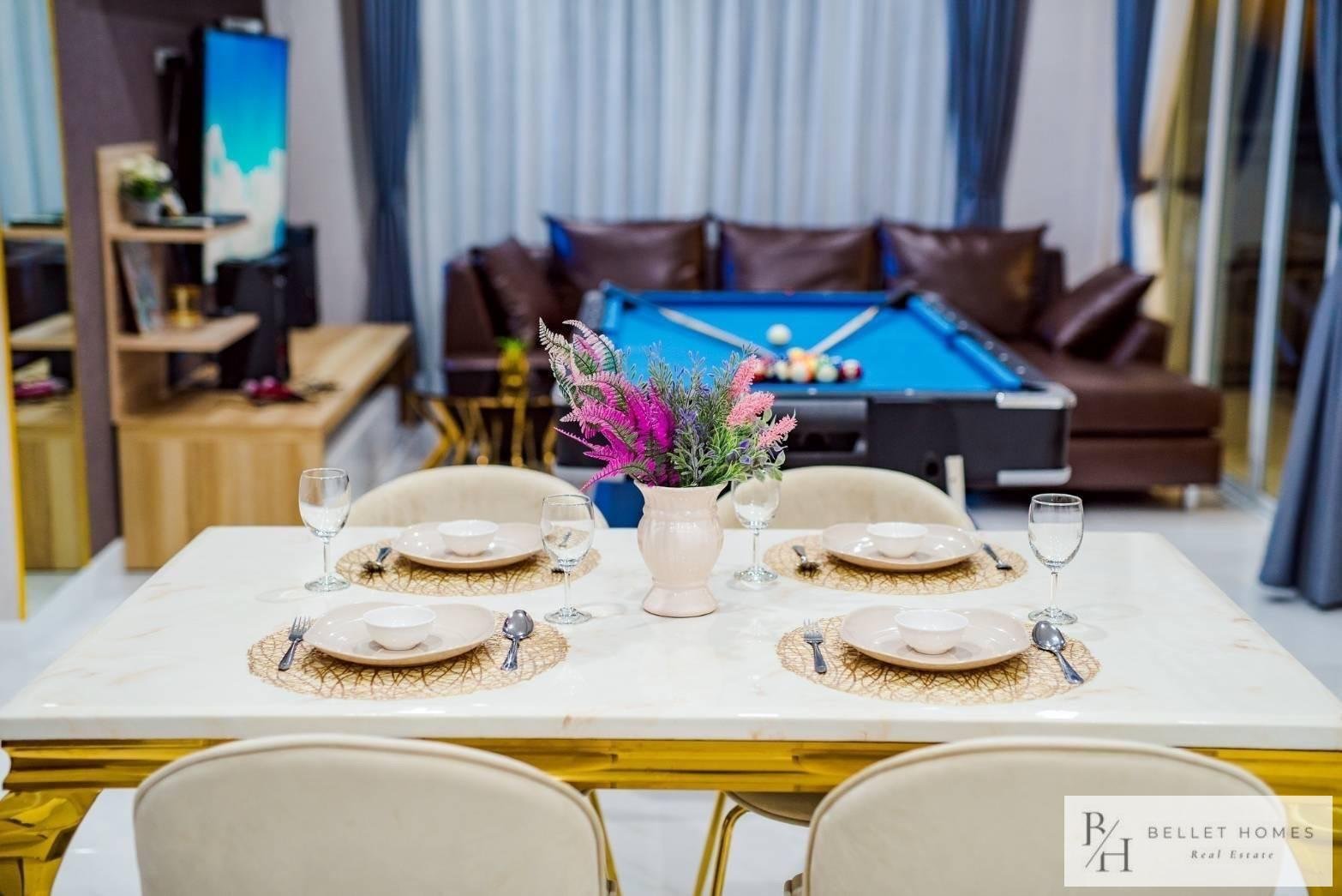 This fully furnished private pool villa is located in Hua Hin Soi 88, offering mountain views and modern comfort. With spacious indoor and outdoor areas, it is perfect for families or a relaxing holiday home. Ready to move in and well-equipped for daily living.
