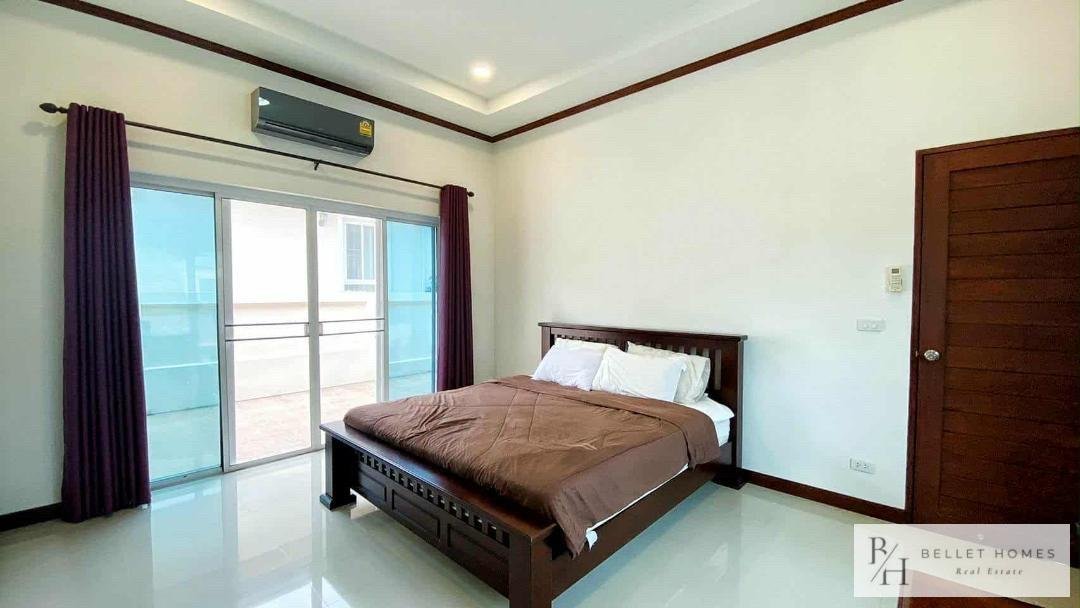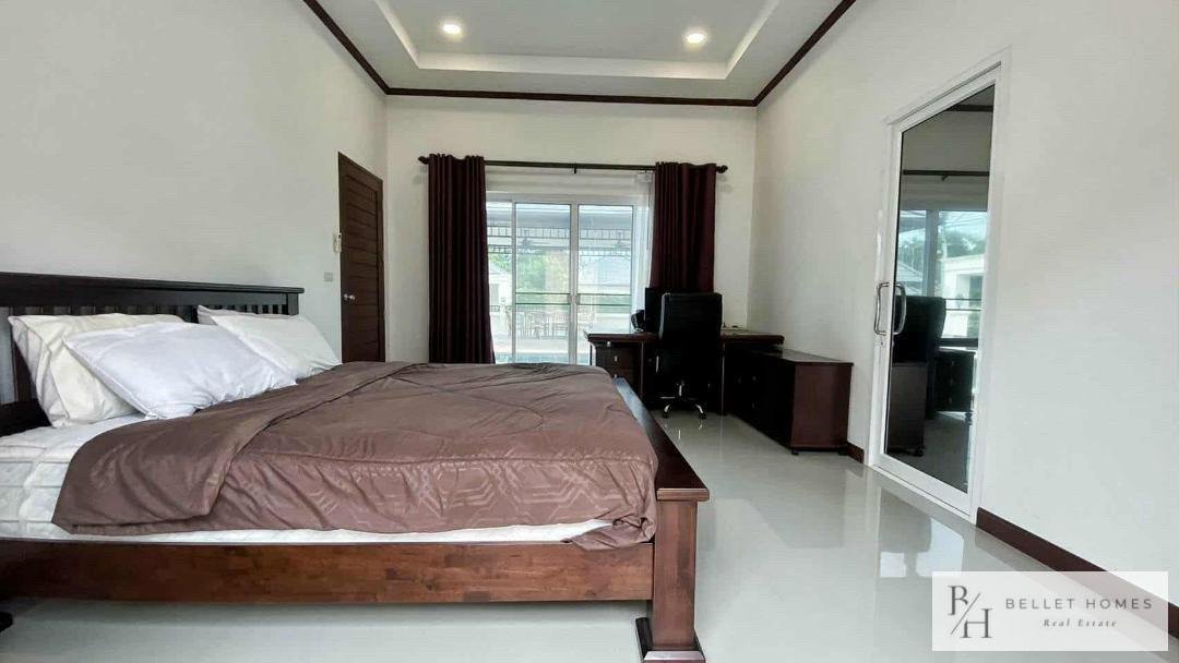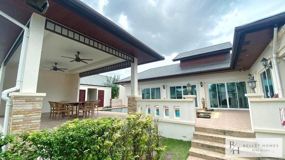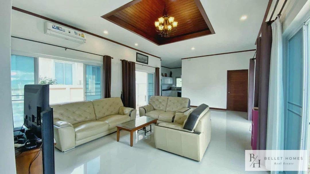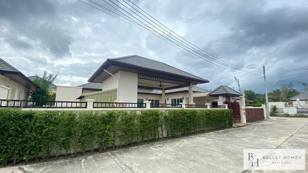 This beautifully designed single-family home offers comfort, privacy, and relaxation in a lush and peaceful environment near Hua Hin city. With a private swimming pool and a well-planned 131 sqm living area, the property is ideal for families or those seeking a tranquil lifestyle. The home combines modern functionality with a warm, welcoming atmosphere. Perfect for long-term living or as a peaceful holiday residence close to the beach and city conveniences.