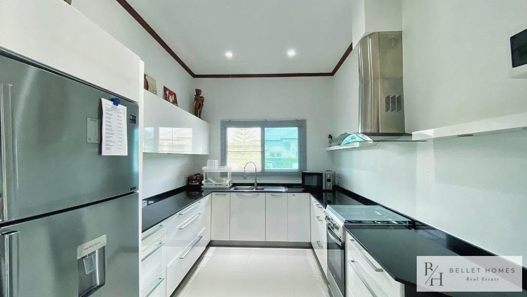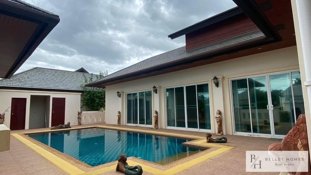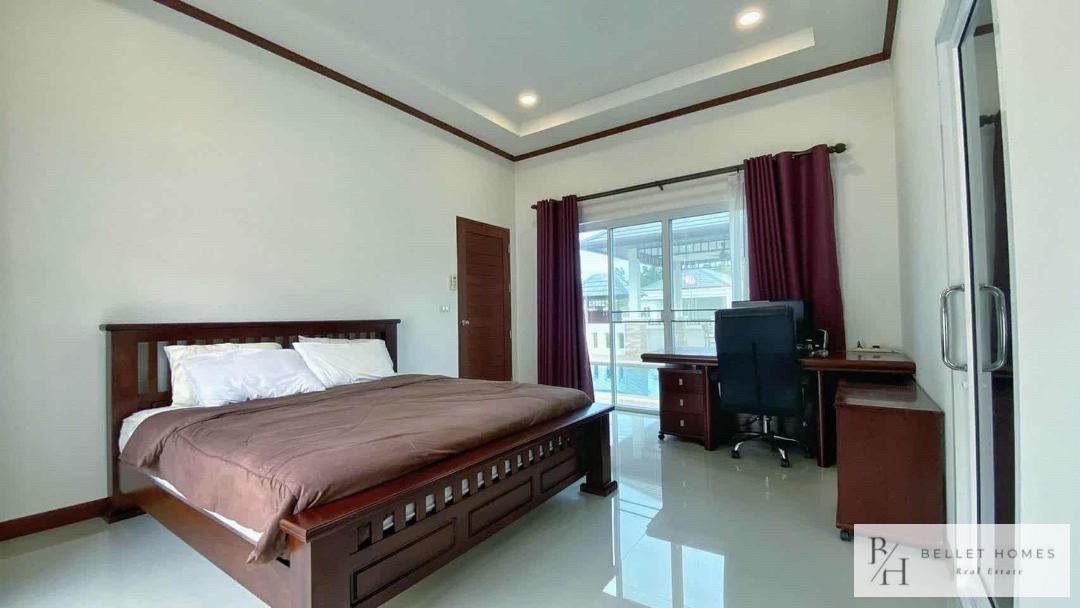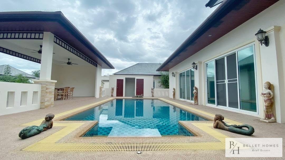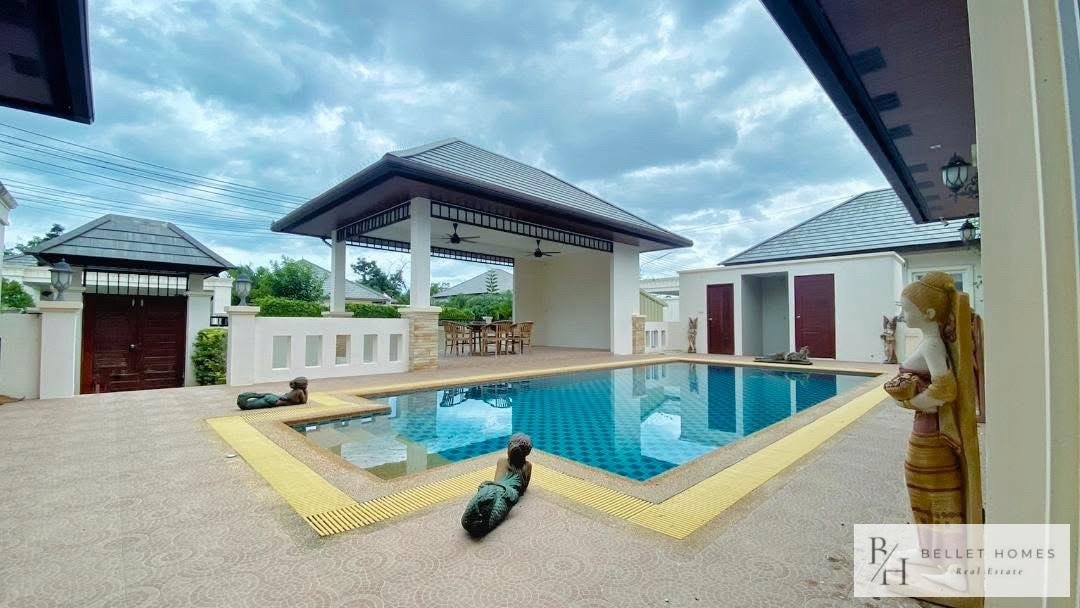 This beautifully designed single-family home offers comfort, privacy, and relaxation in a lush and peaceful environment near Hua Hin city. With a private swimming pool and a well-planned 131 sqm living area, the property is ideal for families or those seeking a tranquil lifestyle. The home combines modern functionality with a warm, welcoming atmosphere. Perfect for long-term living or as a peaceful holiday residence close to the beach and city conveniences.