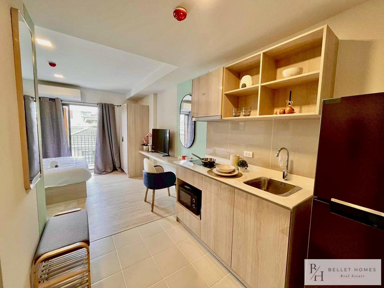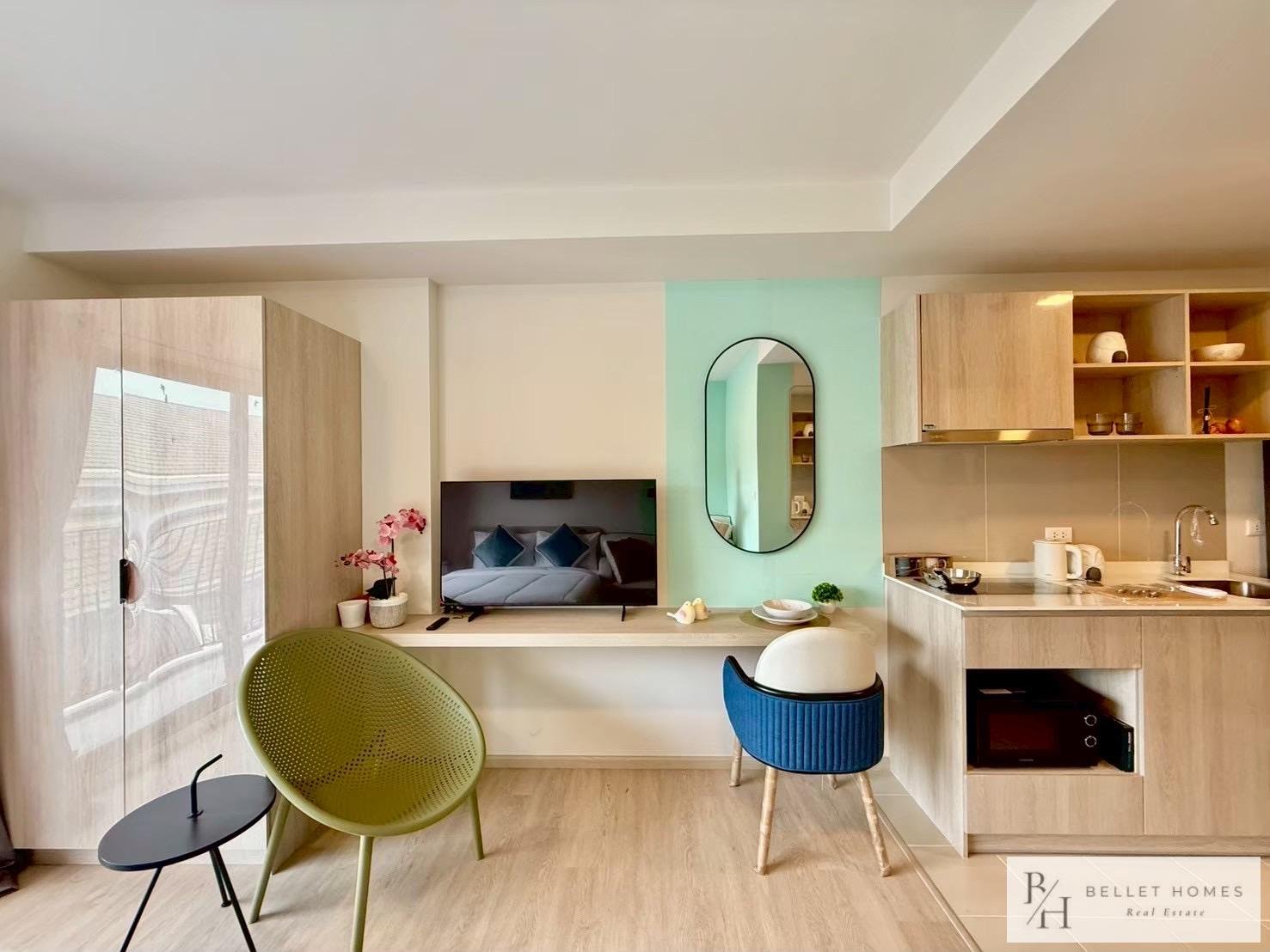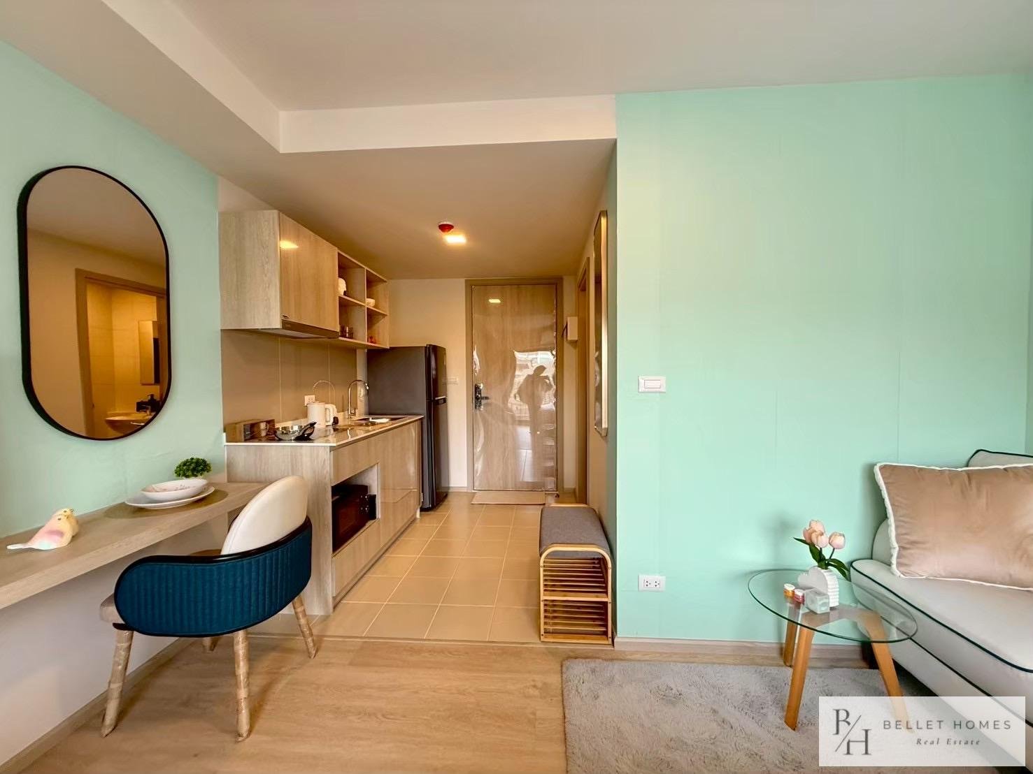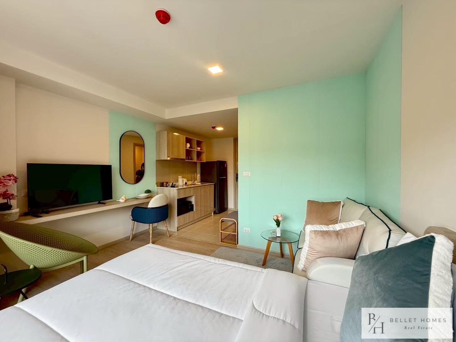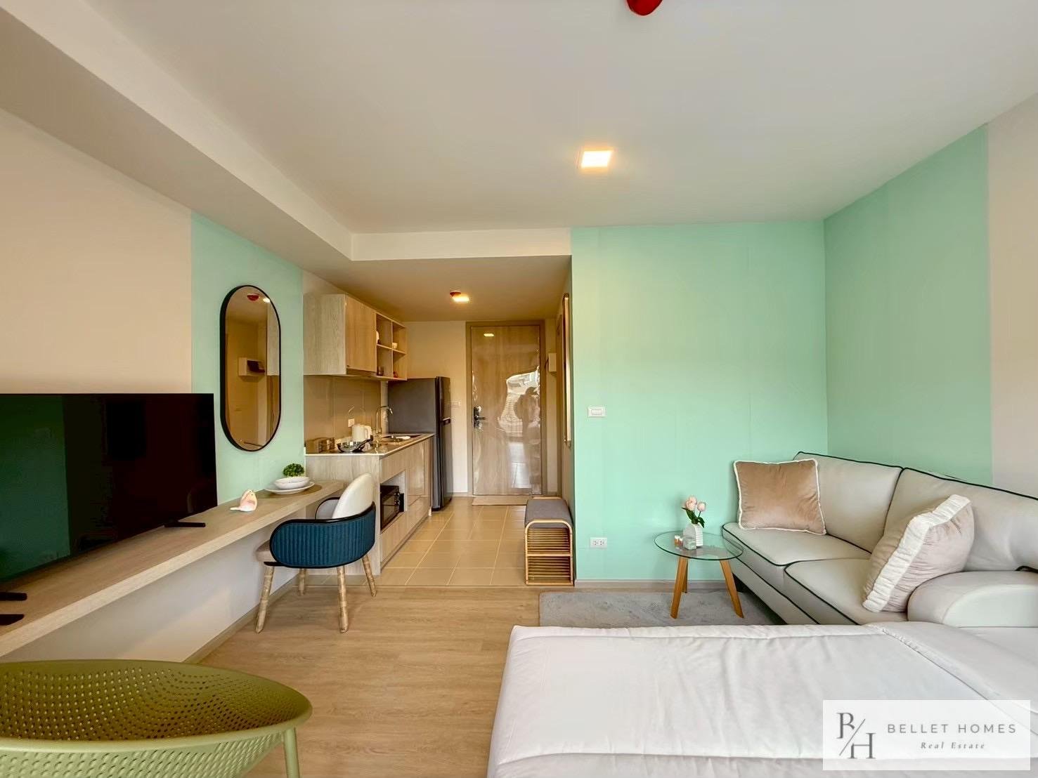 This stylish 1-bedroom condominium is located on the 5th floor of Building B at Cabanas Hua Hin, only 300 meters from the beach. Fully furnished and designed for easy living, the unit offers a quiet and comfortable environment. Perfect for solo residents, couples, or digital nomads seeking a peaceful beachside home.
