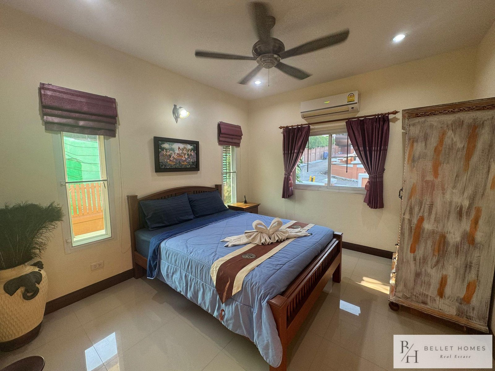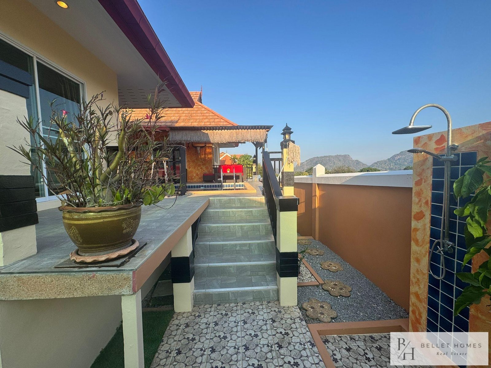 This modern single-detached villa is set within a peaceful residential project surrounded by lush green mountains and beautiful sea views. Designed for comfortable family living, the villa offers spacious interiors and well-planned living areas to support everyday activities. Villa features a private swimming pool, providing a serene and relaxing atmosphere. Conveniently located, the project allows easy access to Hua Hin city within 15 minutes.