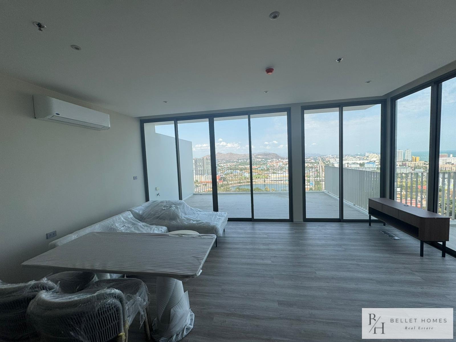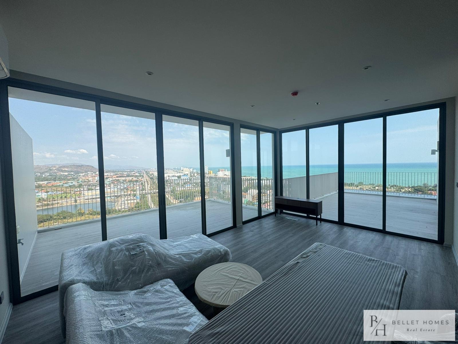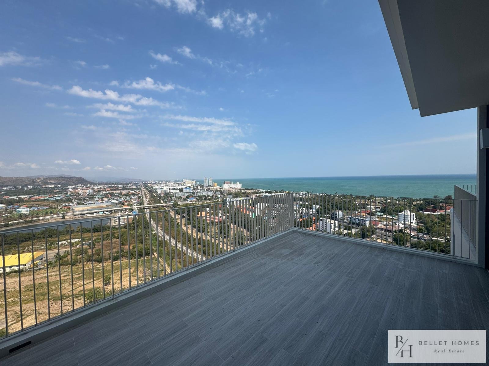 • Condo for sale in Nong Kae, Hua Hin • 2 bedrooms / 2 bathrooms • Living area: 113 sq.m. • Located on the 26th floor • Corner unit with 180-degree panoramic views • Mountain and sea views • Wide private balcony • Partially furnished • Air-conditioning installed • Bright and well-ventilated unit