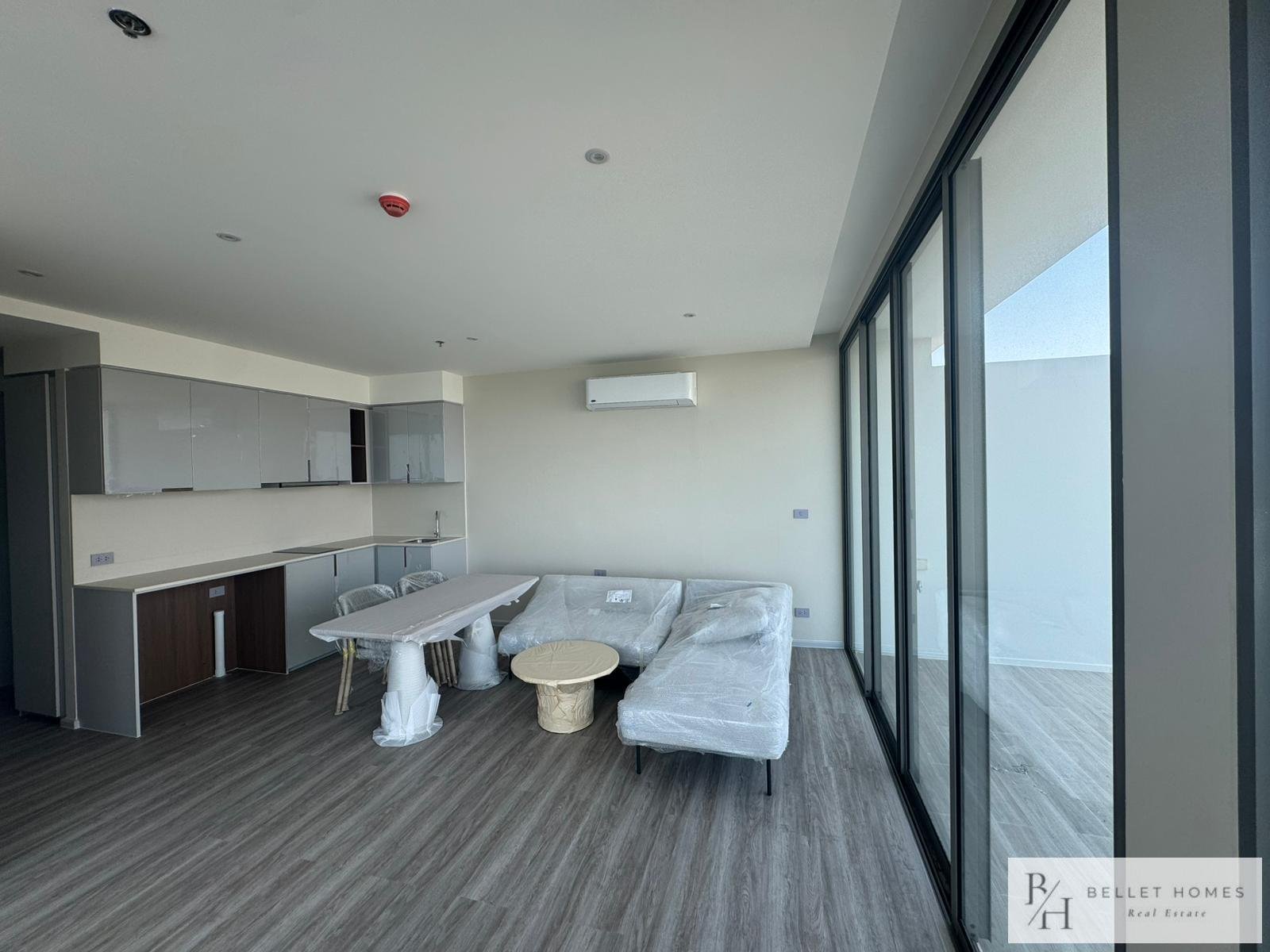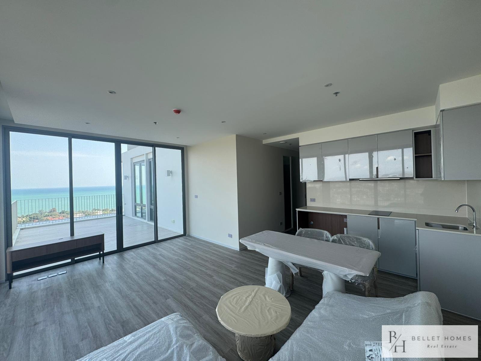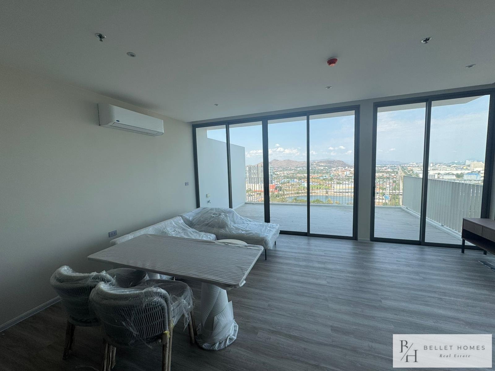 • Condo for sale in Nong Kae, Hua Hin • 2 bedrooms / 2 bathrooms • Living area: 113 sq.m. • Located on the 26th floor • Corner unit with 180-degree panoramic views • Mountain and sea views • Wide private balcony • Partially furnished • Air-conditioning installed • Bright and well-ventilated unit