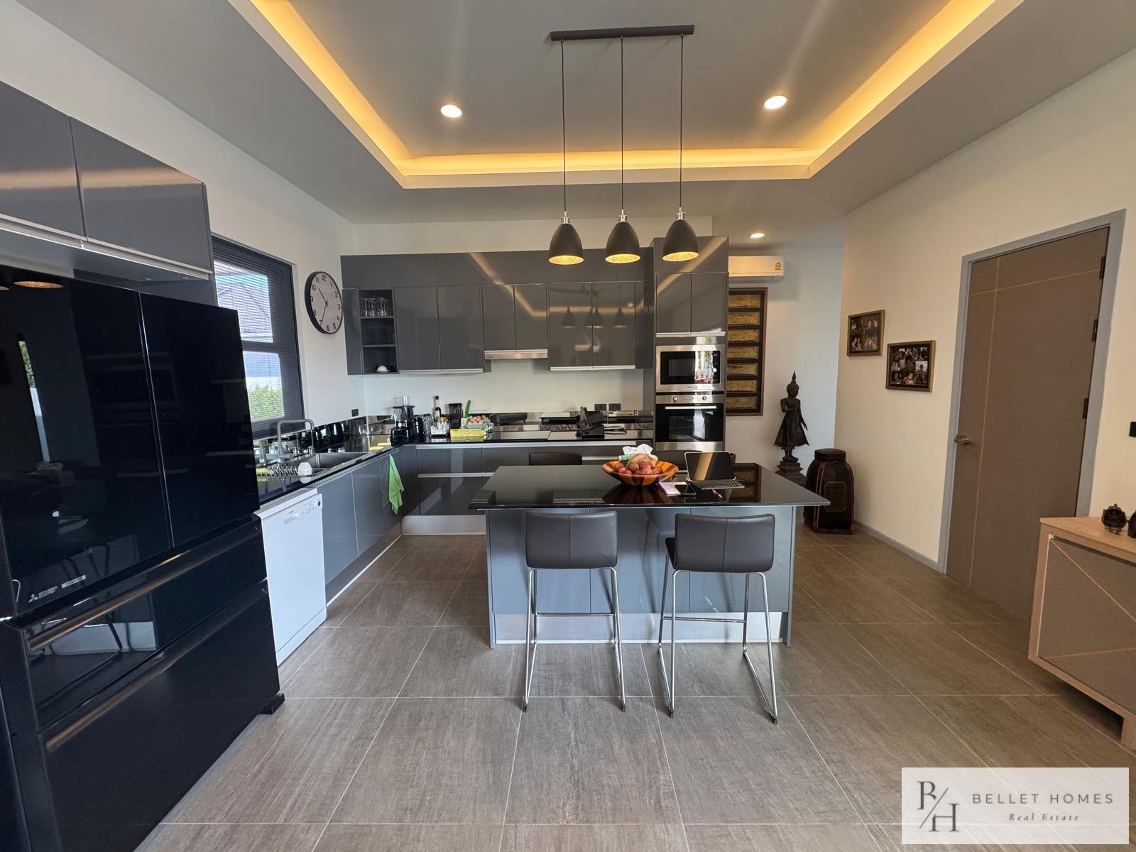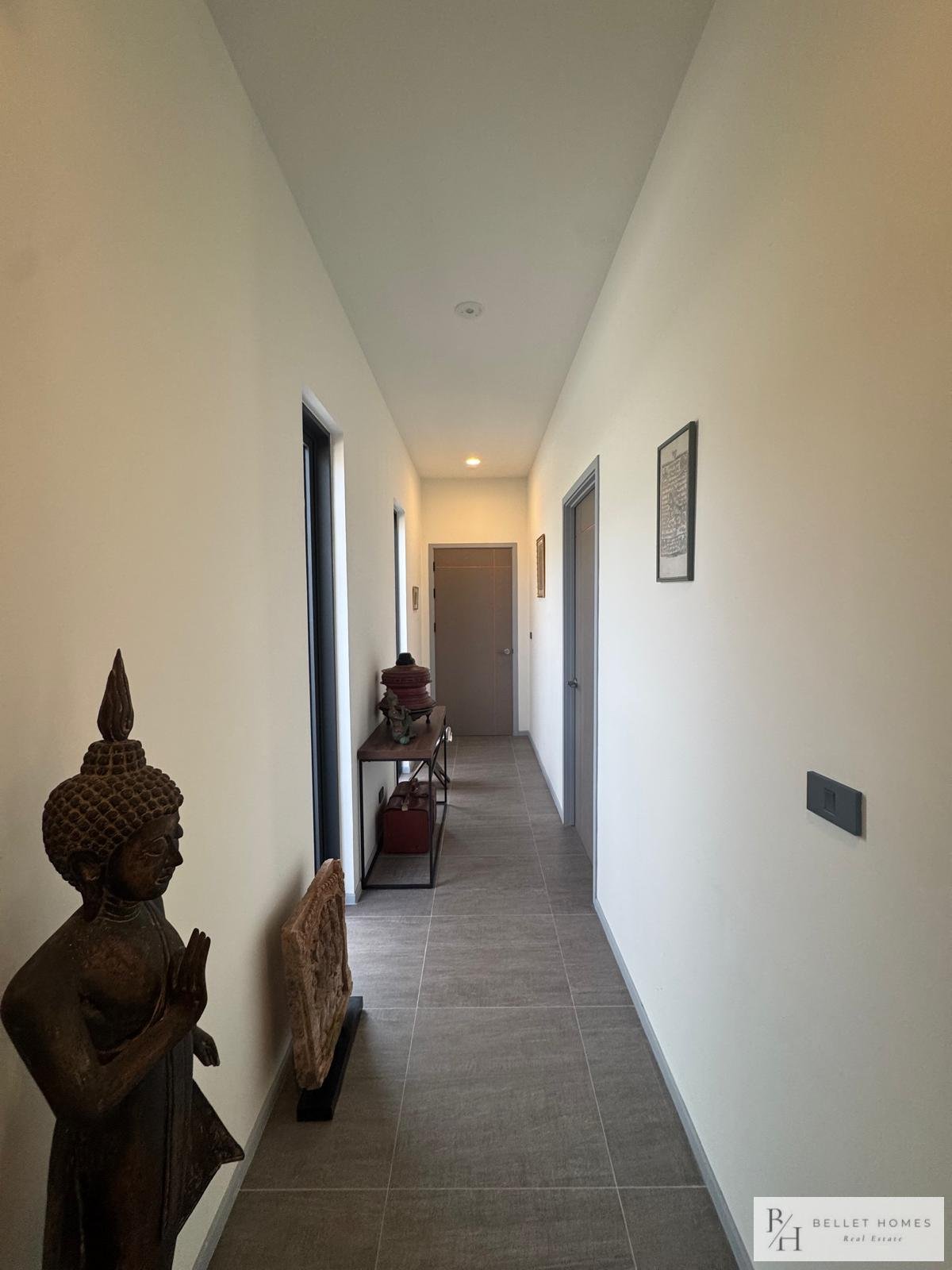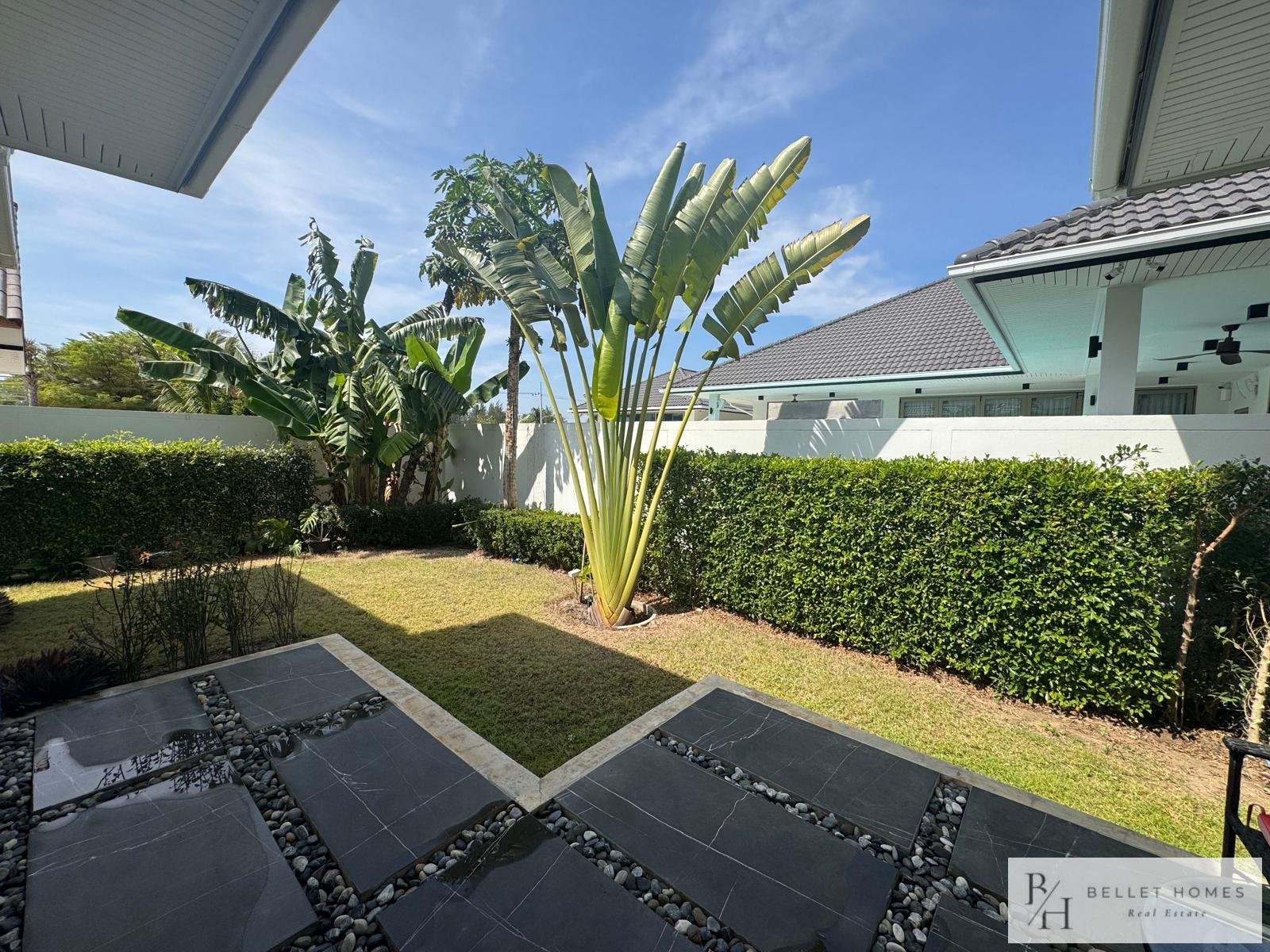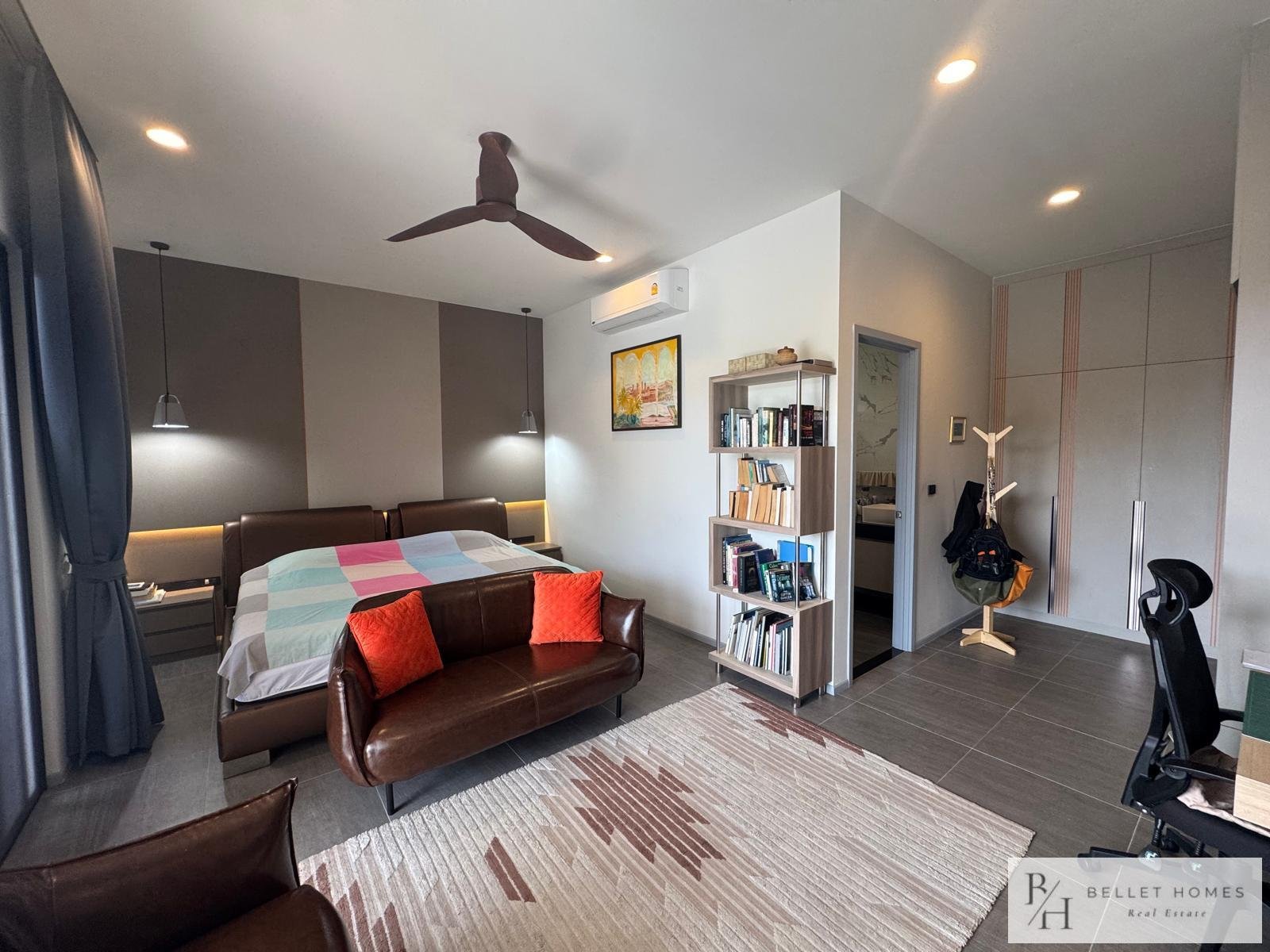 • 3 bedrooms • 3 bathrooms • Land size: 1,200 sq.m. • Living area: 400 sq.m. • Private swimming pool • Large storage room • Island-style European kitchen • Fully furnished • Beautifully decorated interior • Red Chanote title deed