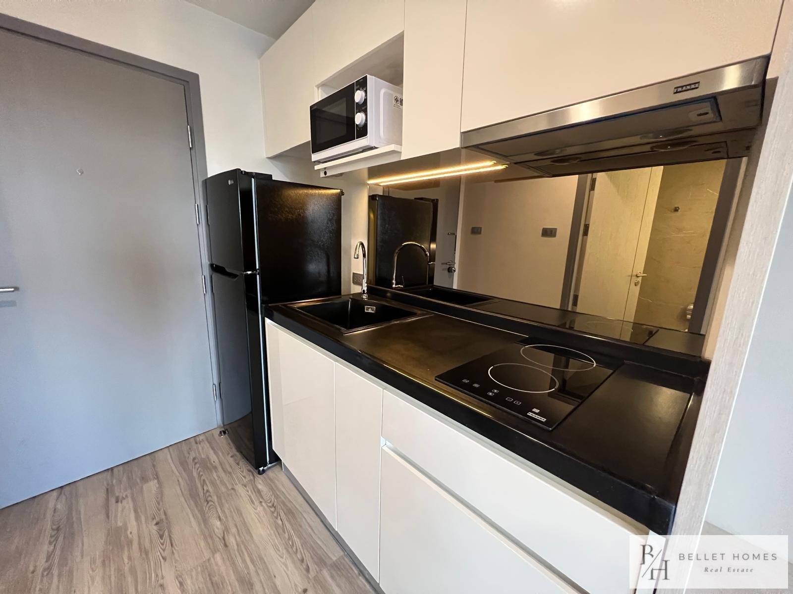 Modern 29 sqm studio located on the 5th floor with elevator, fully furnished and ready to move in. The unit includes a modern kitchenette, balcony with mountain view, and full access to premium condominium facilities.