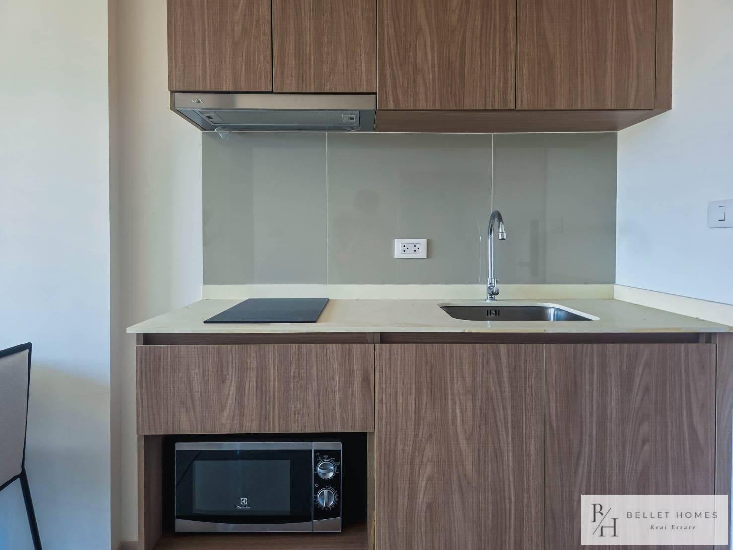 • 1 bedroom layout • 35 sq.m. • 4th floor • Fully furnished • TV • Refrigerator • Bed and mattress • Sofa • Built-in kitchen set