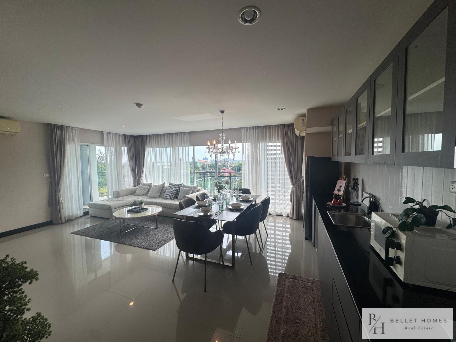 This is a rare opportunity to own a spacious 3-bedroom condo with panoramic views in one of Hua Hin’s most sought-after developments.