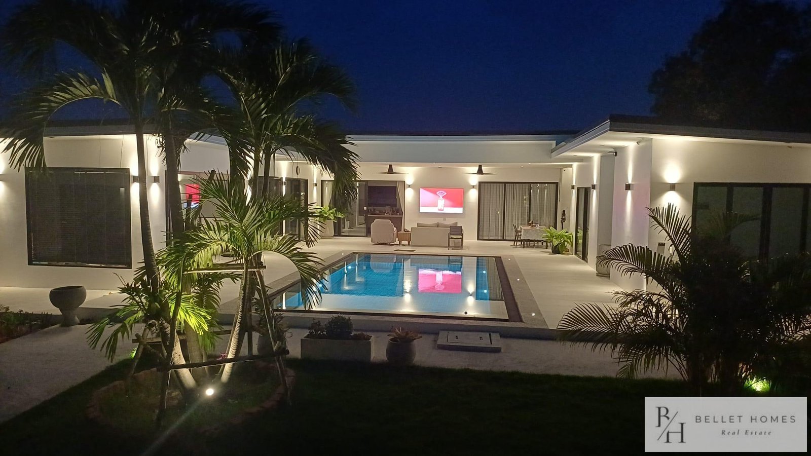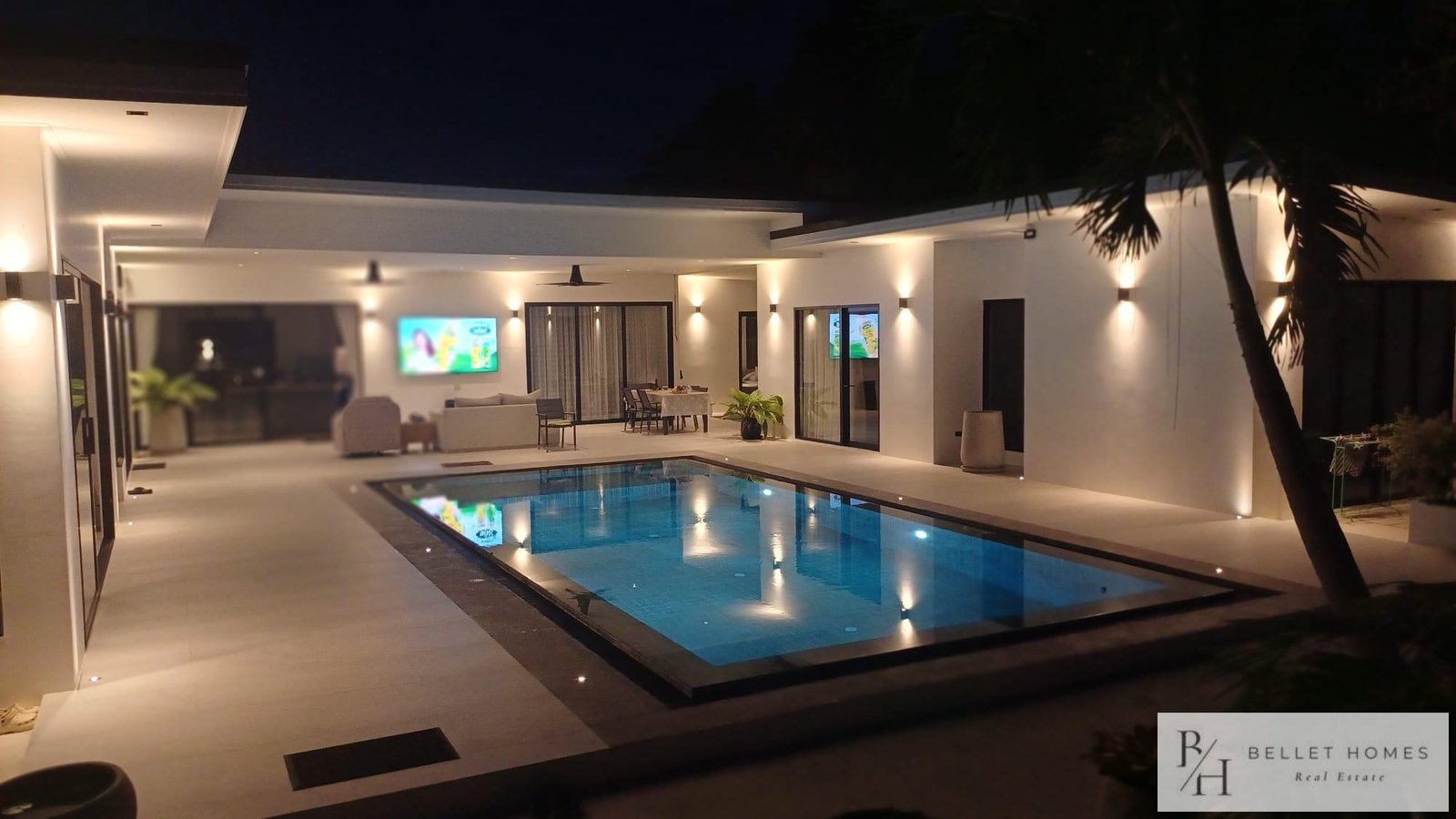 This spacious private pool villa is located in a quiet and convenient area on Soi 70, Hua Hin. Completed in 2024, the property sits on a large land plot offering privacy, comfort, and modern living. The villa is fully furnished and equipped with an energy-efficient solar power system, making it ideal for residential living or as a private holiday home.