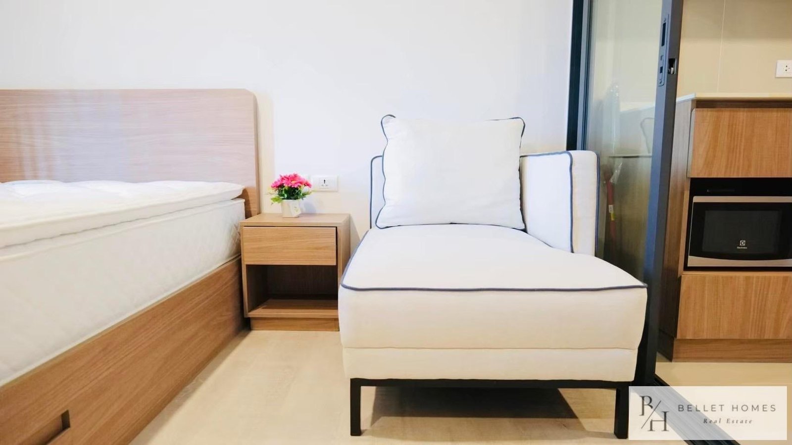 Well-designed studio condo in a prime central Hua Hin location. Fully furnished with a separated kitchen area, ideal for comfortable living or rental investment.