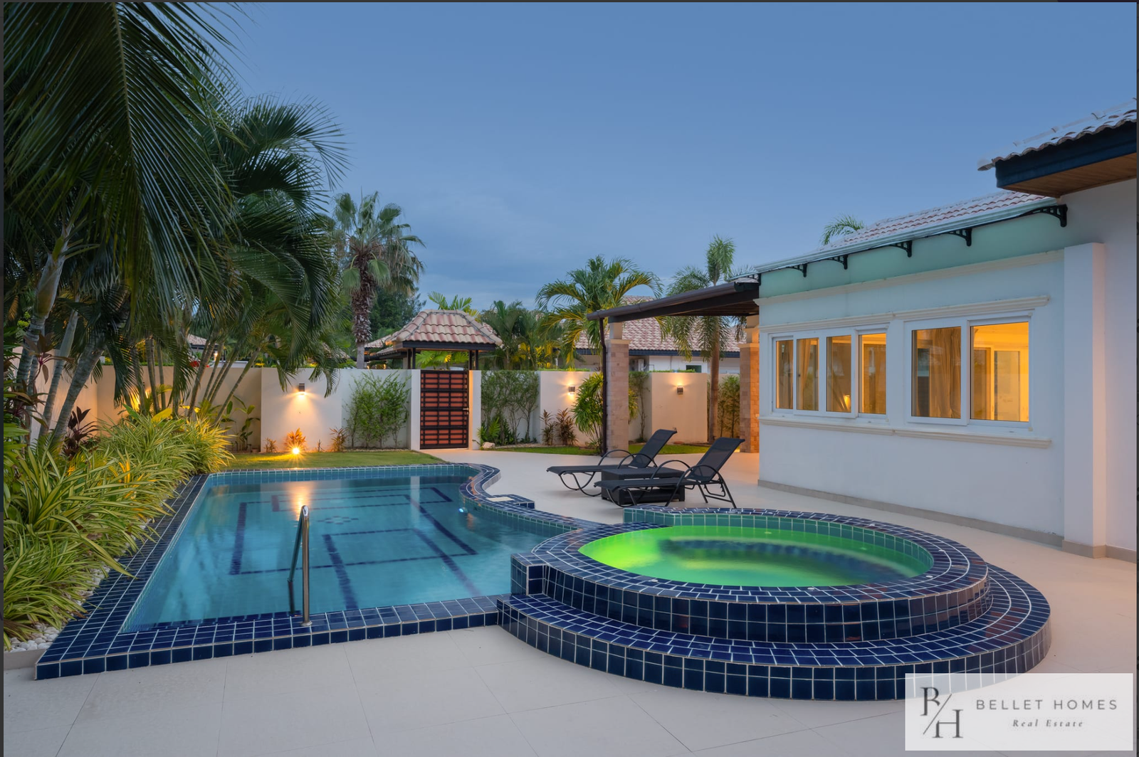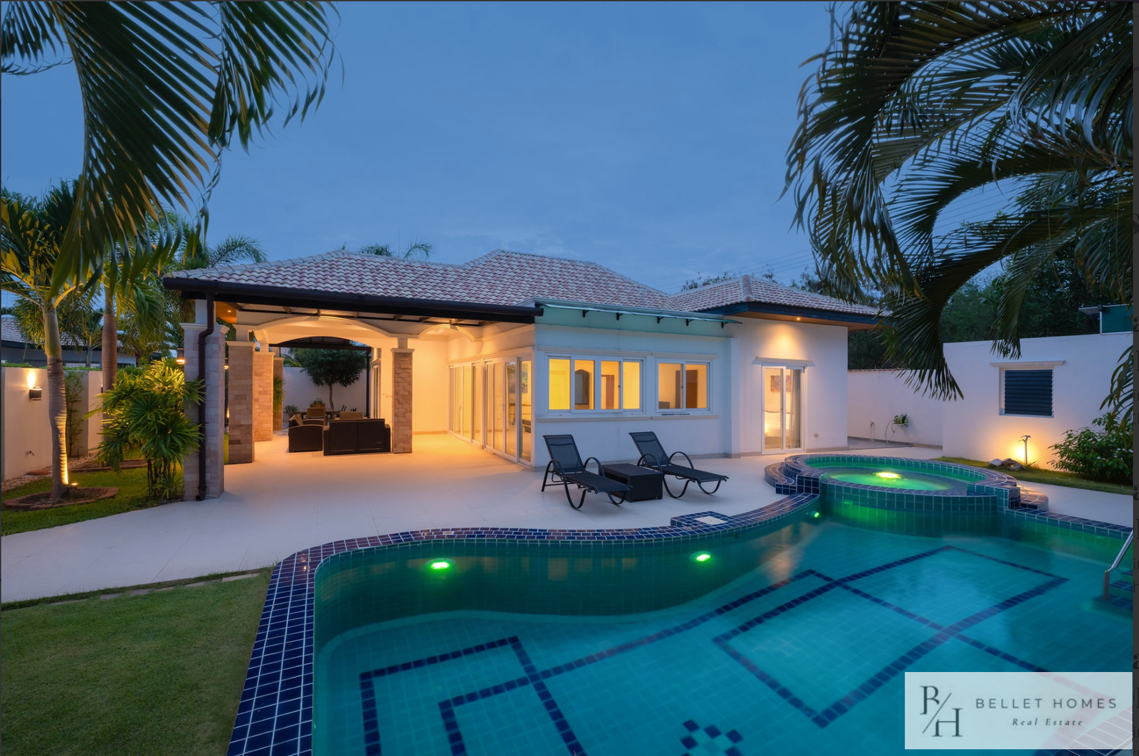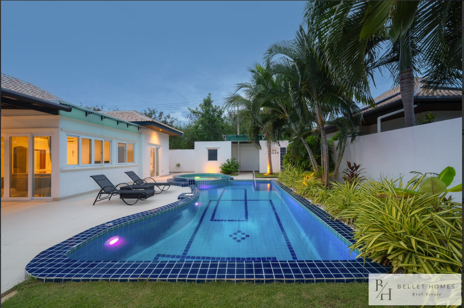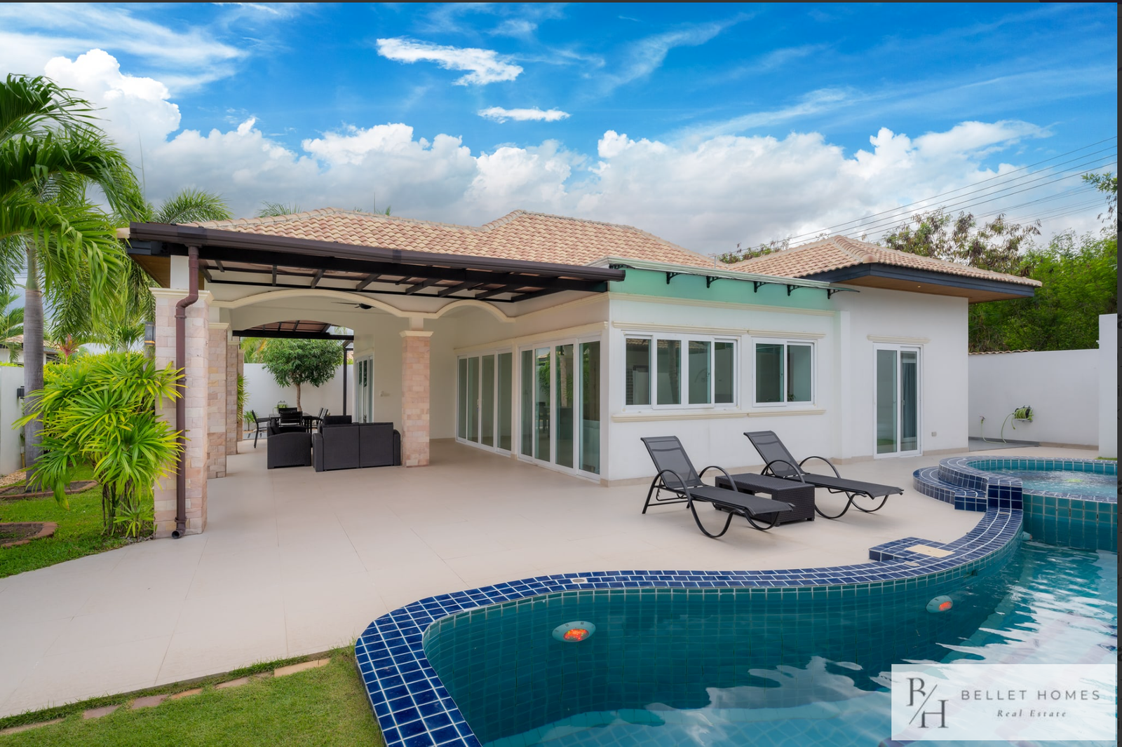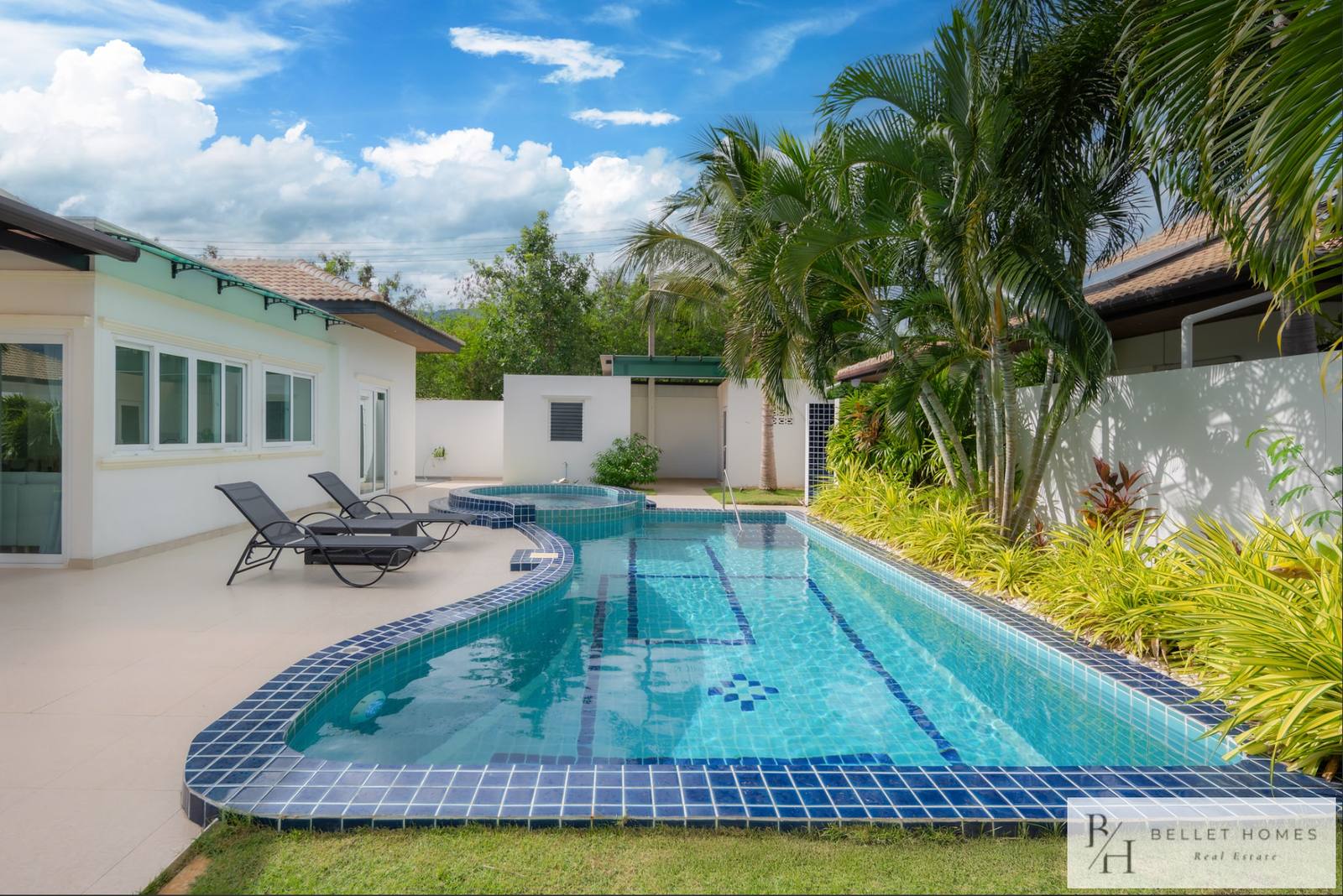 This fully furnished private pool villa offers comfortable living with modern amenities and generous outdoor space. Featuring a saltwater swimming pool with jacuzzi, the villa is ideal for families holiday living. Located in a quiet area of Hin Lek Fai, the property provides privacy while remaining close to schools and Hua Hin city center.
