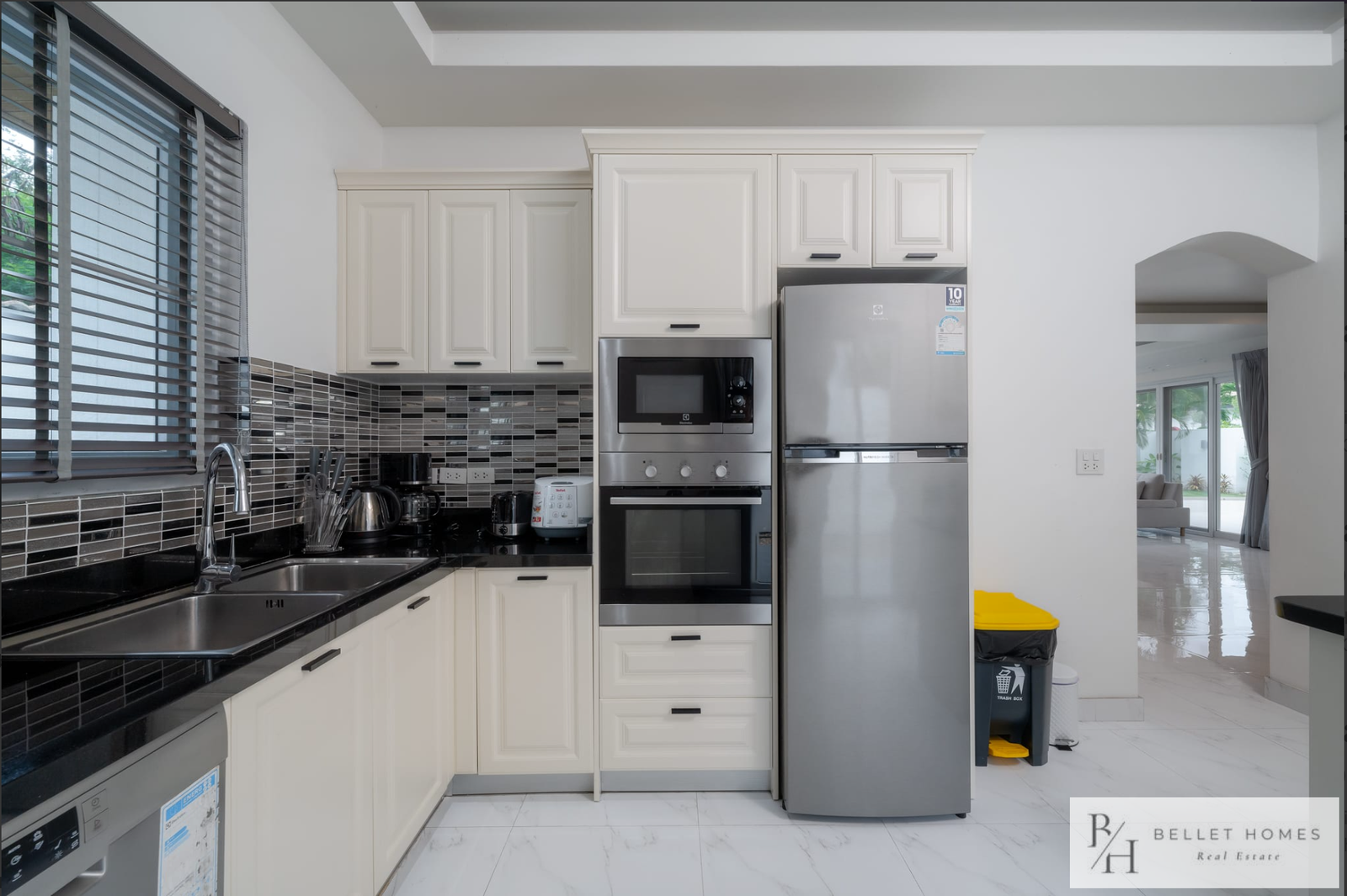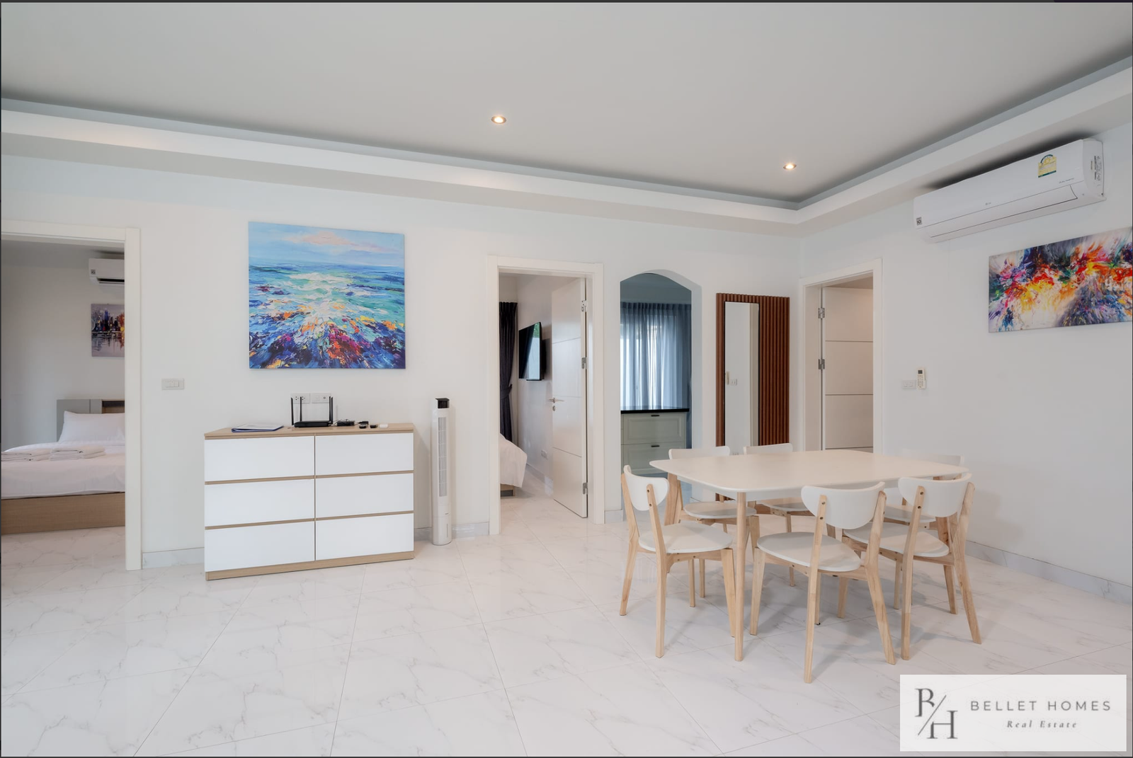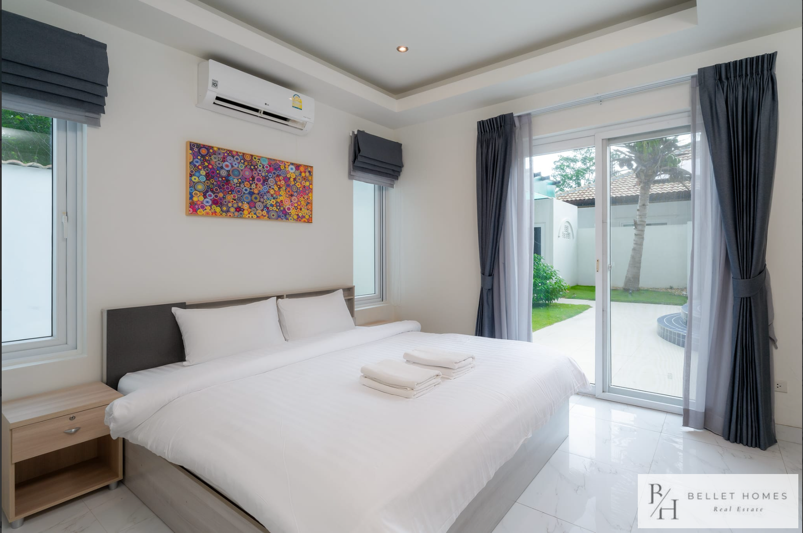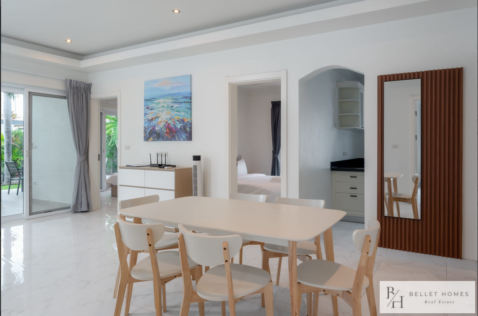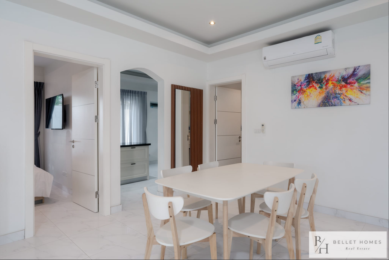 This fully furnished private pool villa offers comfortable living with modern amenities and generous outdoor space. Featuring a saltwater swimming pool with jacuzzi, the villa is ideal for families holiday living. Located in a quiet area of Hin Lek Fai, the property provides privacy while remaining close to schools and Hua Hin city center.